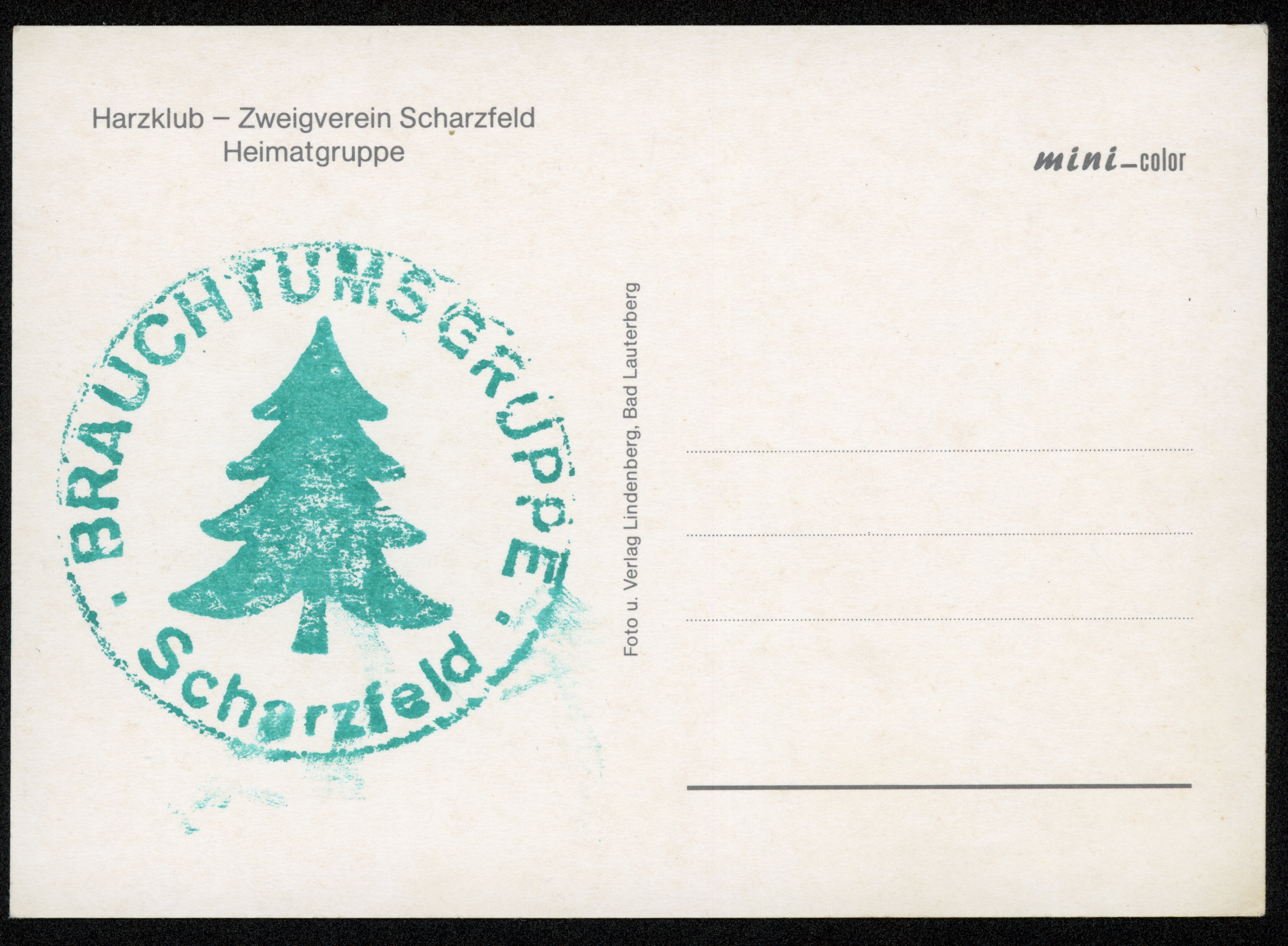Ort Scharzfeld Motive Harzklub - Zweigverein Scharzfeld Heimatgruppe Format groß Verlag E. Lindenberg u. Sohn, Bad Lauterberg / Harz Bestell- oder Individualnummer - Tags Brauchtumsgruppe