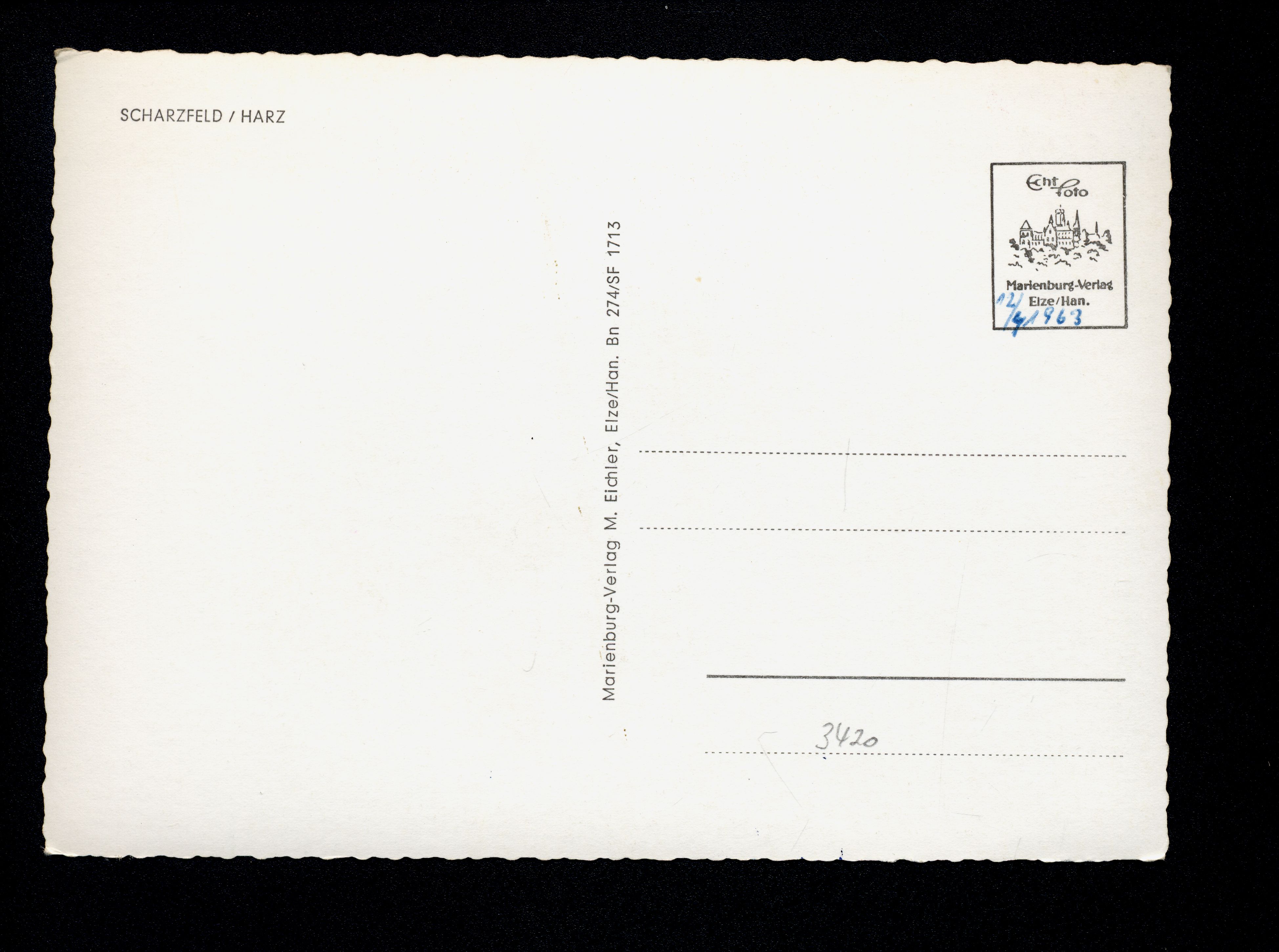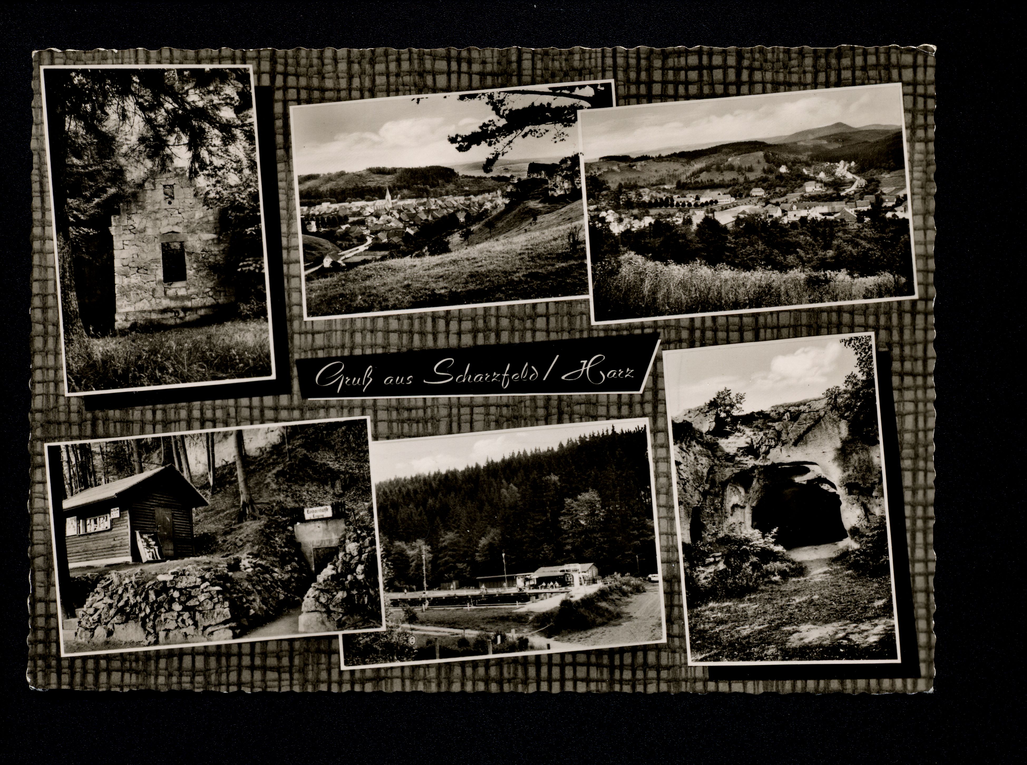 Ort Scharzfeld Motive Teilansicht Waldschwimmbad Steinkirche Burg Scharzfels Format groß Jahr 1963 Verlag M. Eichler, Elze / Han (Marienburg-Verlag) Bestell- oder Individualnummer Bn 274/SF 1713 Tags Freibad