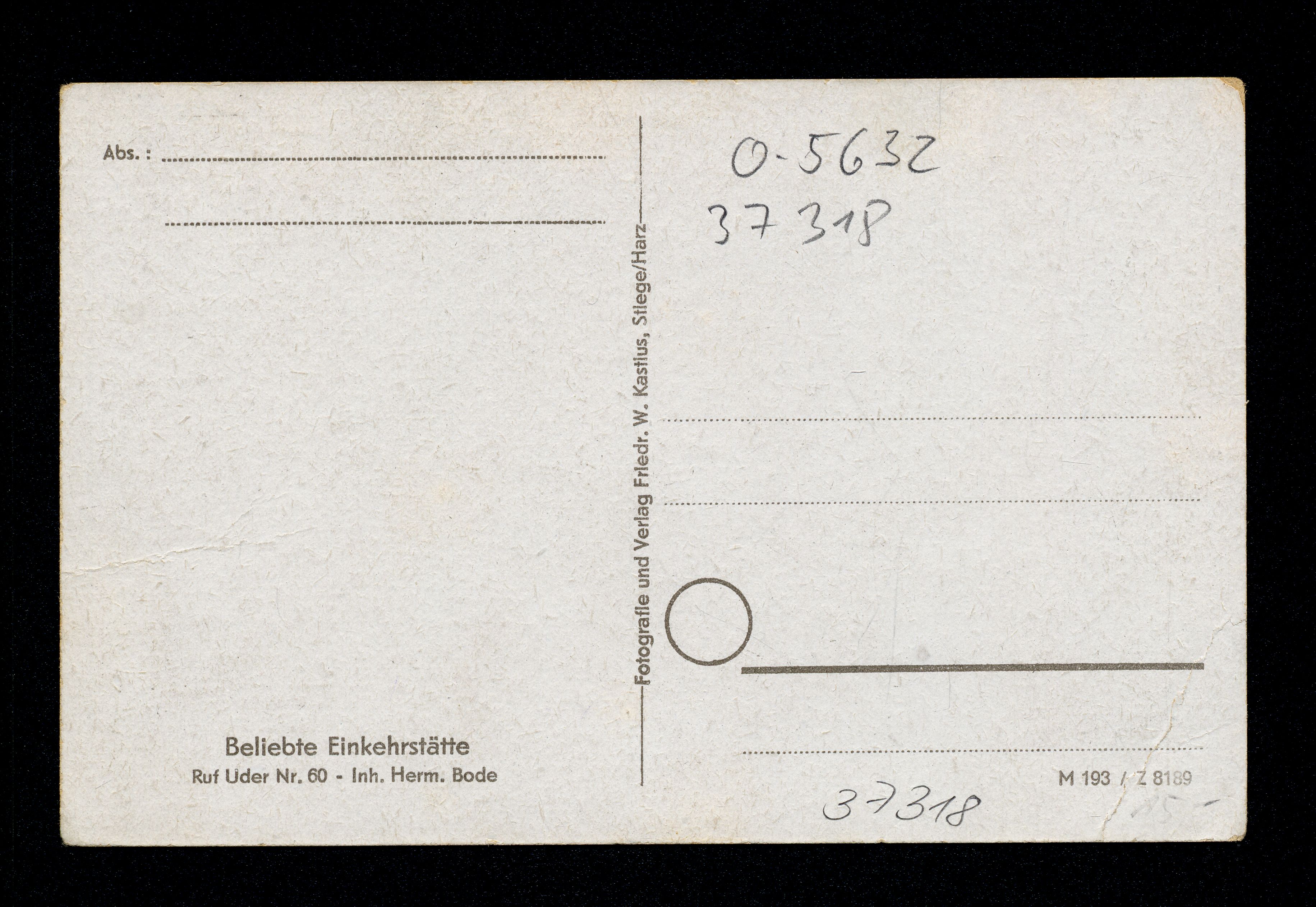 Ort Uder Motive Gemeindegasthaus Format klein Verlag Friedr. W. Kastius, Stiege/Harz Bestell- oder Individualnummer M 193 / Z 8189 Tags Gasthaus Herm. Bode
