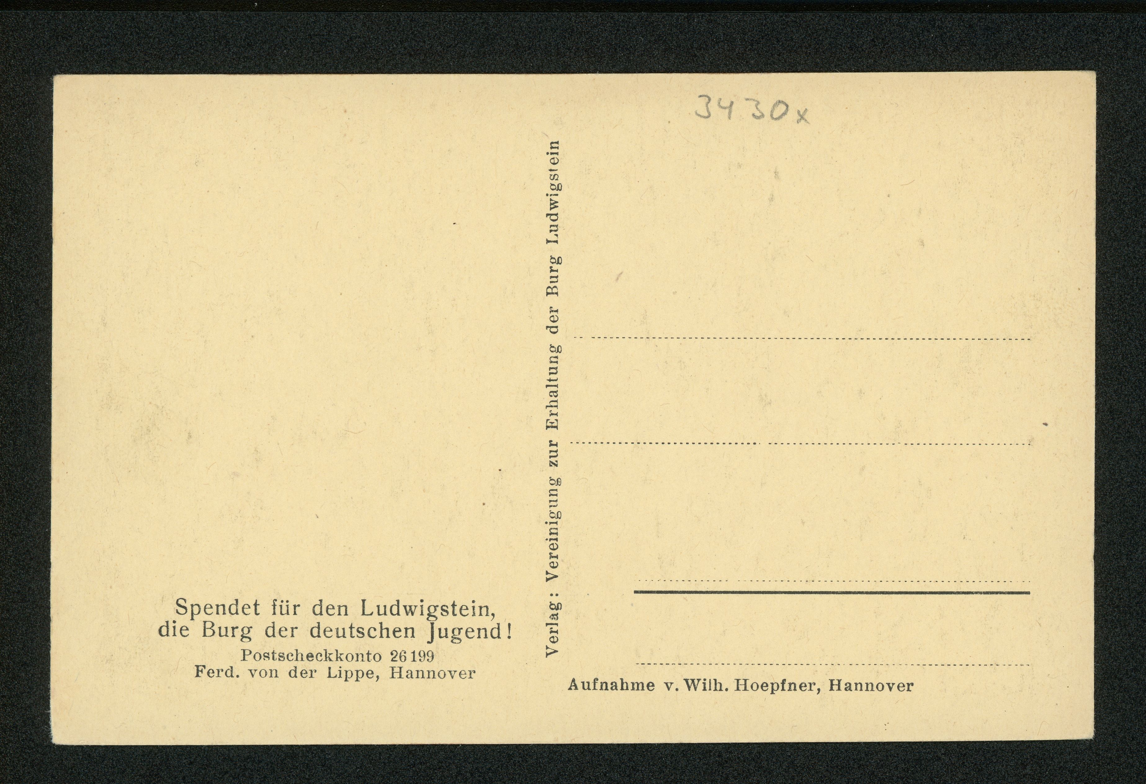 Ort Werleshausen Motive Burghof Format klein Verlag Vereinigung zur Erhaltung der Burg Ludwigstein, Hannover Bestell- oder Individualnummer - Tags Spendenkarte Ferdinand von der Lippe