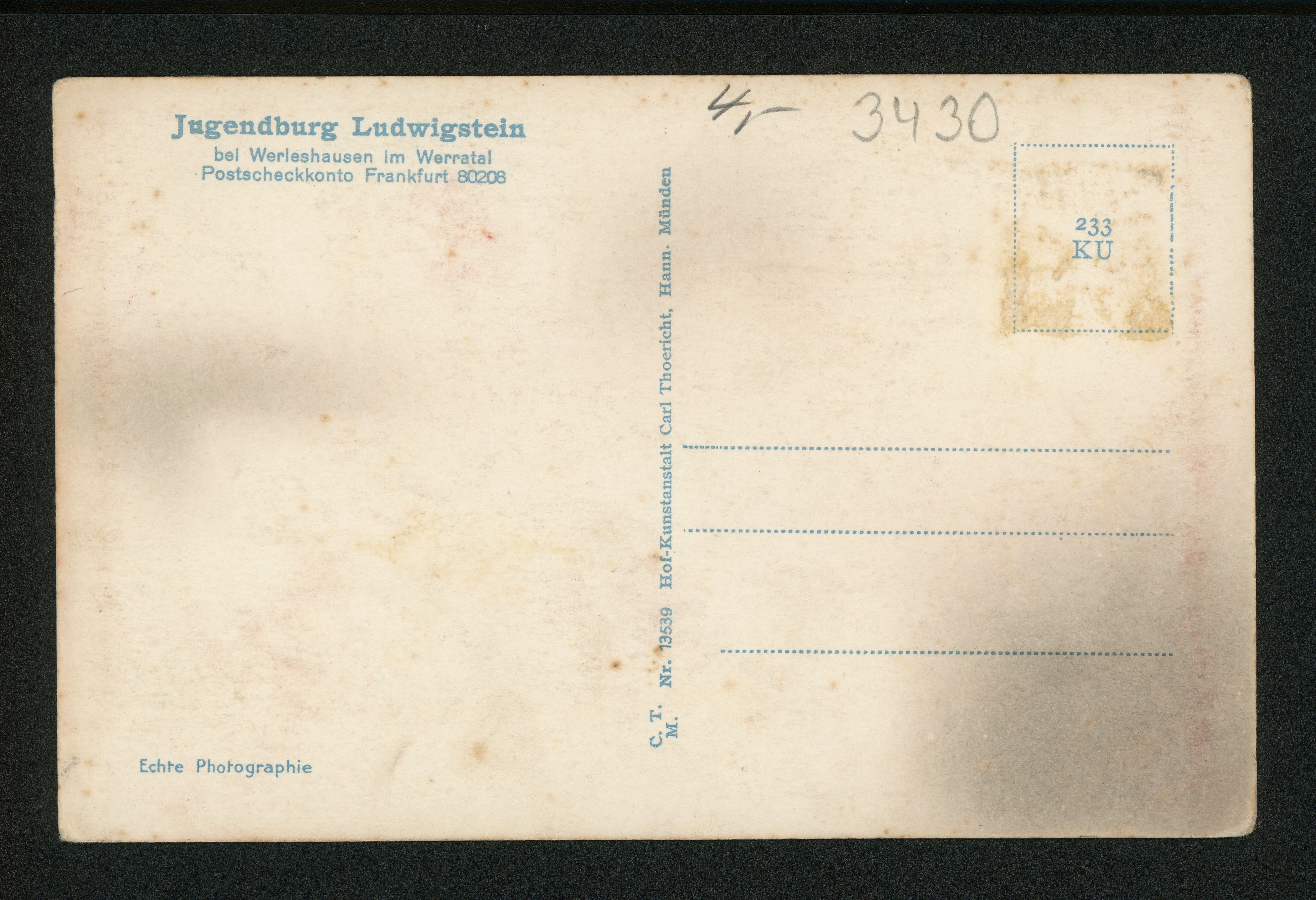 Ort Werleshausen Motive Burg Ludwigstein Format klein Verlag Carl Thoericht, Hann.-Münden (Karl Thoericht) (CTM) Bestell- oder Individualnummer Nr. 13539 233 KU