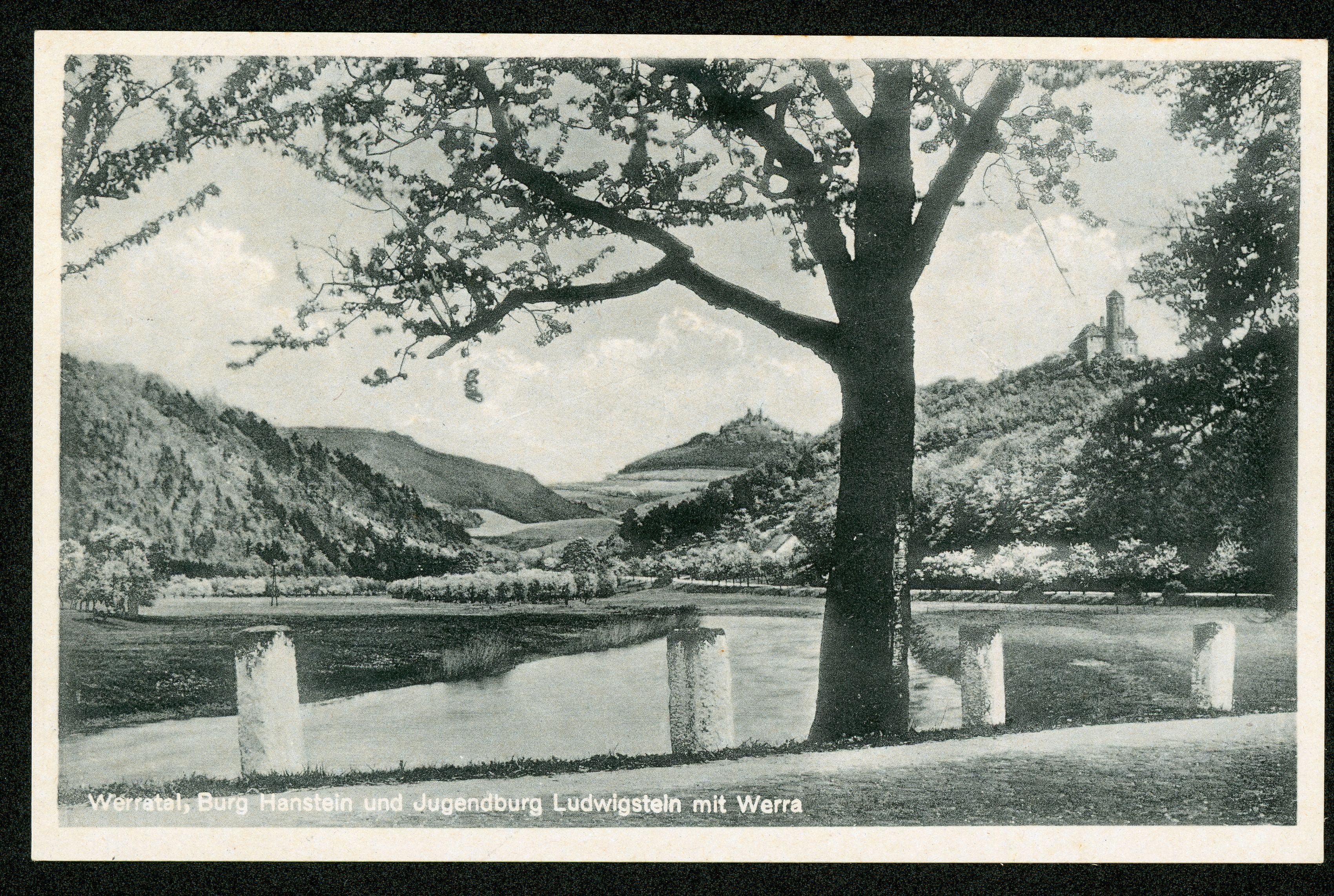 Ort Werleshausen Beschreibung Sammlung: H.M.D. Motive Burg Hanstein und Jugendburg Ludwigstein mit Werra Format klein Verlag Aloys Mecke, Duderstadt Bestell- oder Individualnummer Nr. 855 y 22 Tags Zweiburgenblick Bornhagen