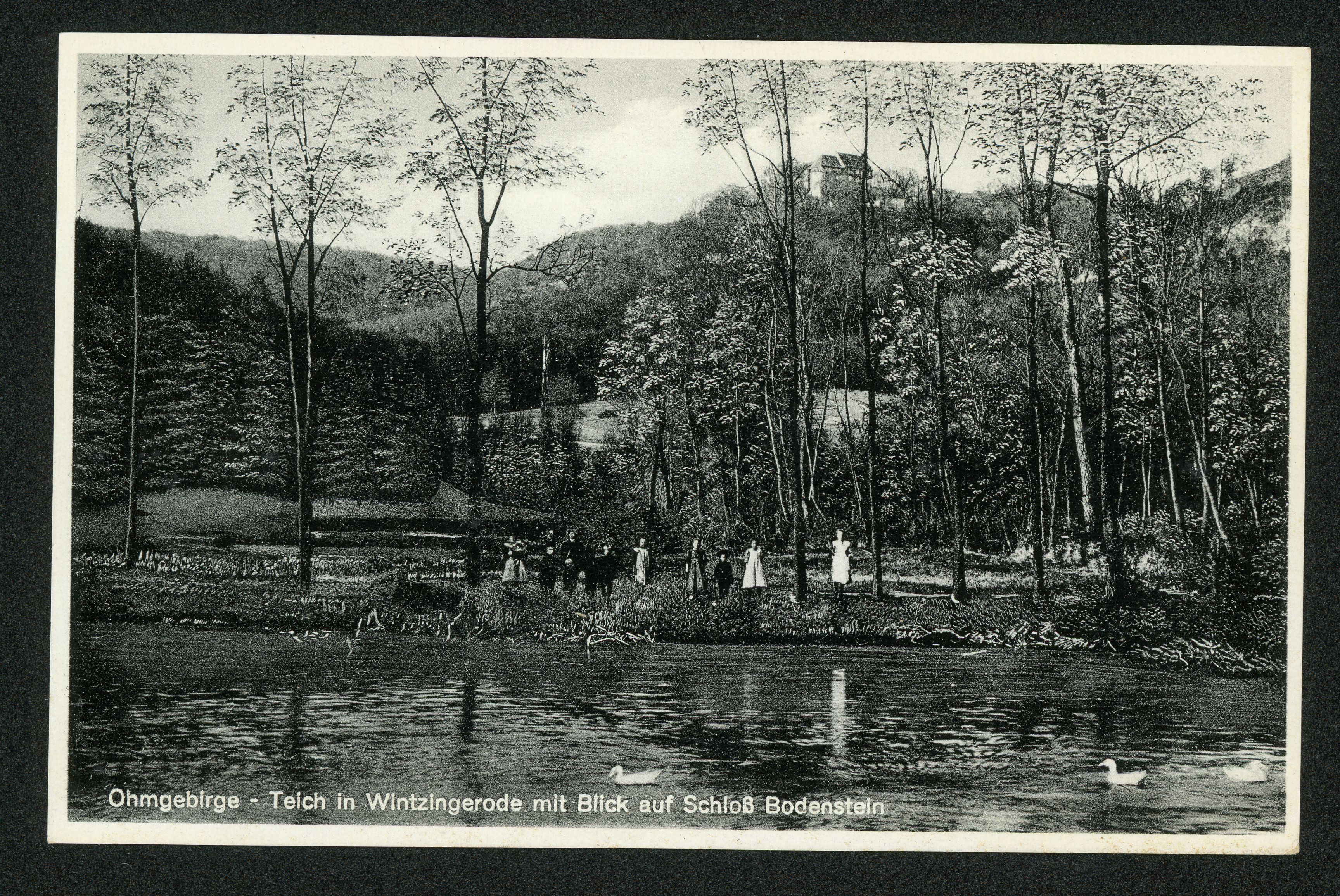 Ort Wintzingerode Beschreibung Sammlung: H.M.D. Motive Teich in Wintzingerode mit Blick auf Schloß Bodenstein Format klein Verlag Aloys Mecke, Duderstadt Bestell- oder Individualnummer Nr. 618 r 52 Tags Burg Bodenstein