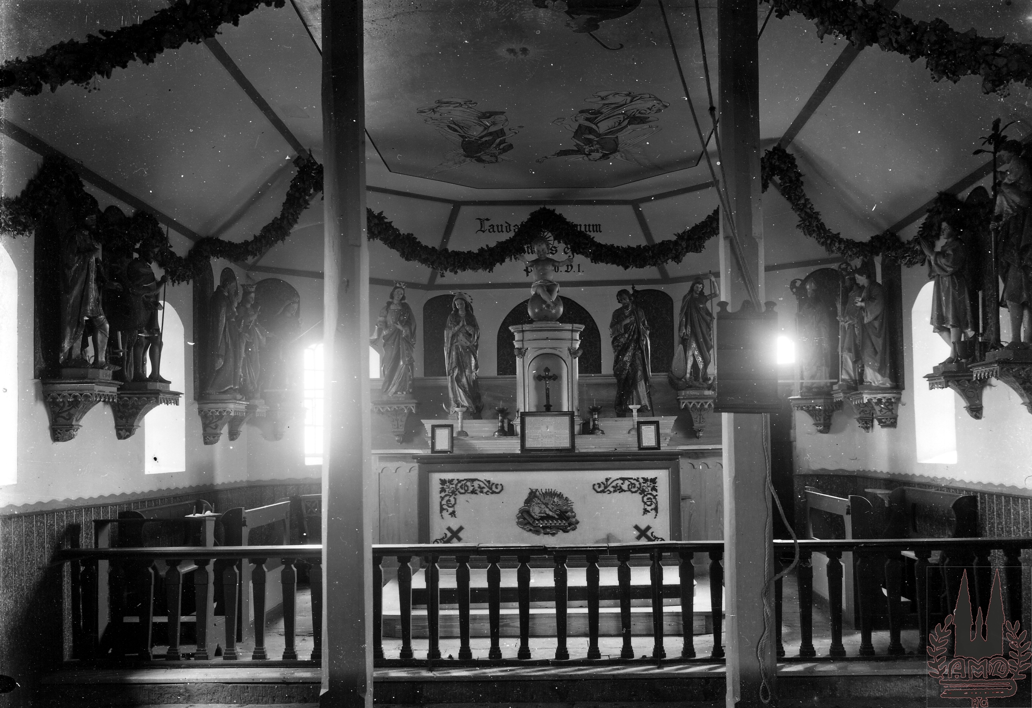 Ort Wollbrandshausen - Belege Beschreibung originales Foto Sammlung: H.M.D. Motive Wallfahrtskapelle zu den Vierzehn Heiligen Nothelfern Nothelferaltar Format Sonderformat Verlag Aloys Mecke, Duderstadt Bestell- oder Individualnummer - Tags Bildarchiv "Verlag Aloys Mecke Duderstadt" Höher-Berg Altar
