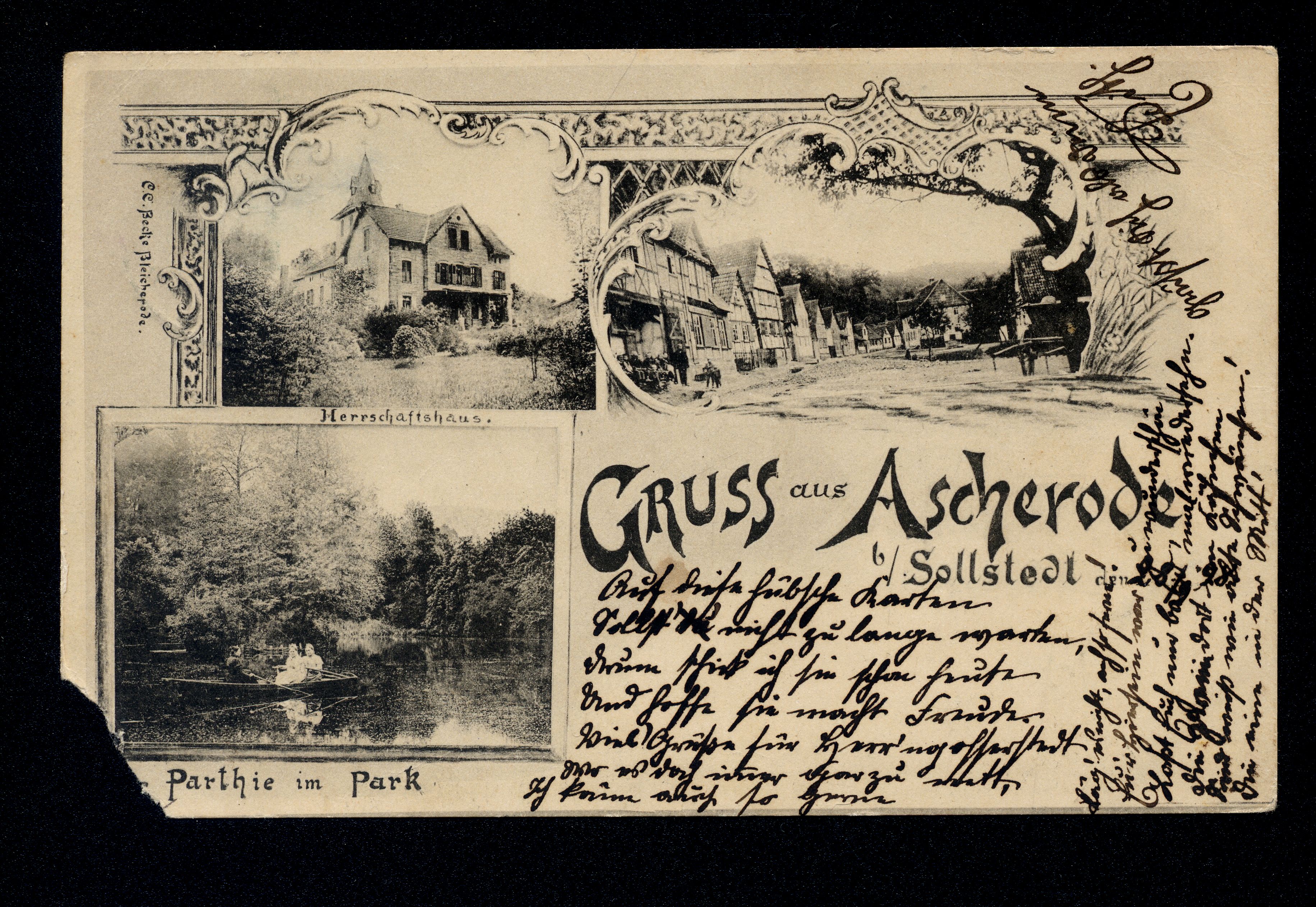 Ort Ascherode (Buhla) Motive Herrschaftshaus Parthie im Park Straßenansicht Format klein Jahr 1898 Verlag C. C. Becke, Bleicherode Bestell- oder Individualnummer - Versanddatum 29.09.1898