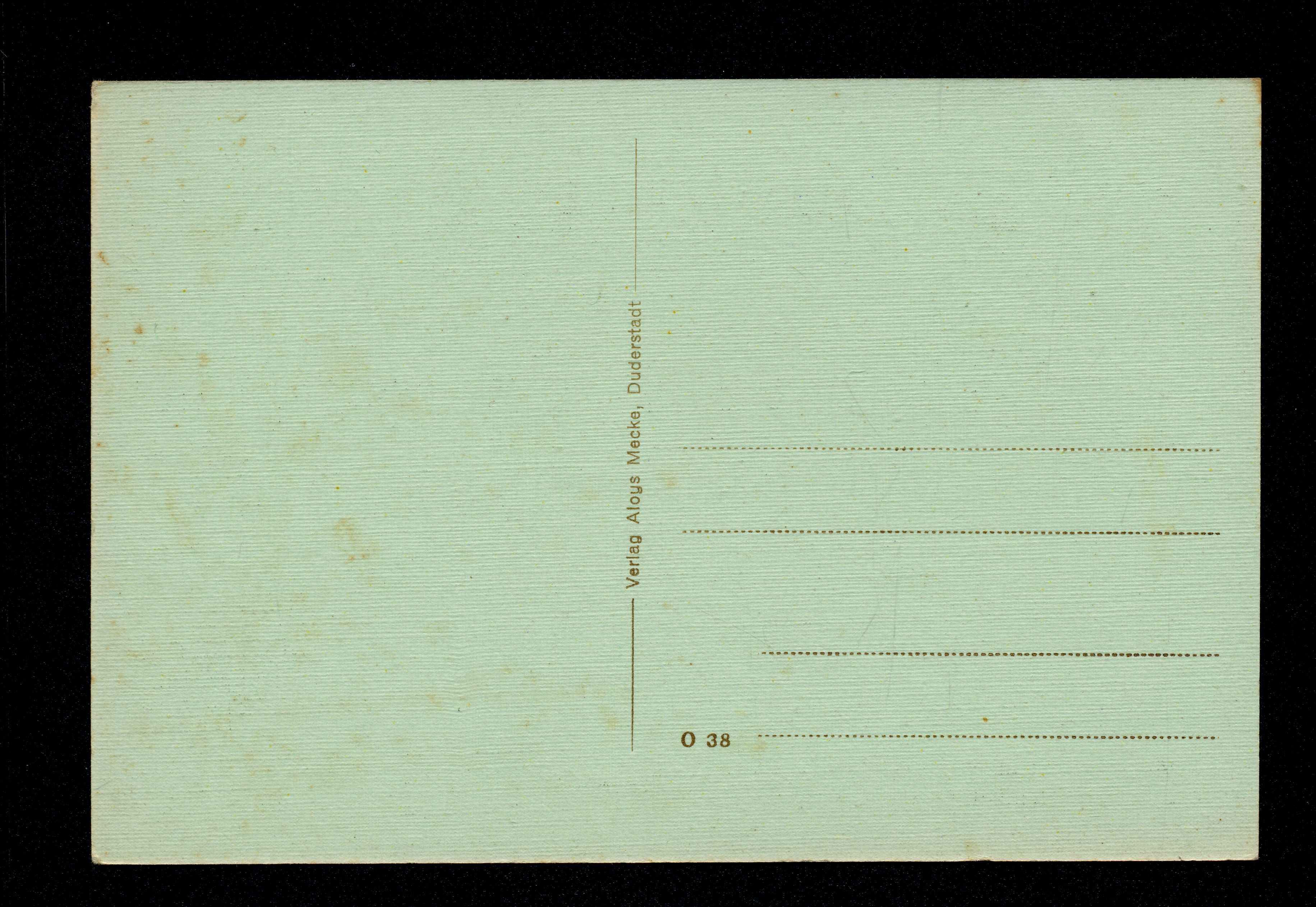 Ort Böseckendorf Beschreibung Variante "grün" Motive Totalbild Oberdorf und Kolonialwhdlg. v. Konradi Mitteldorf Unterdorf m. Schule Format klein Verlag Aloys Mecke, Duderstadt Bestell- oder Individualnummer O 38 Tags Kolonialwaren
