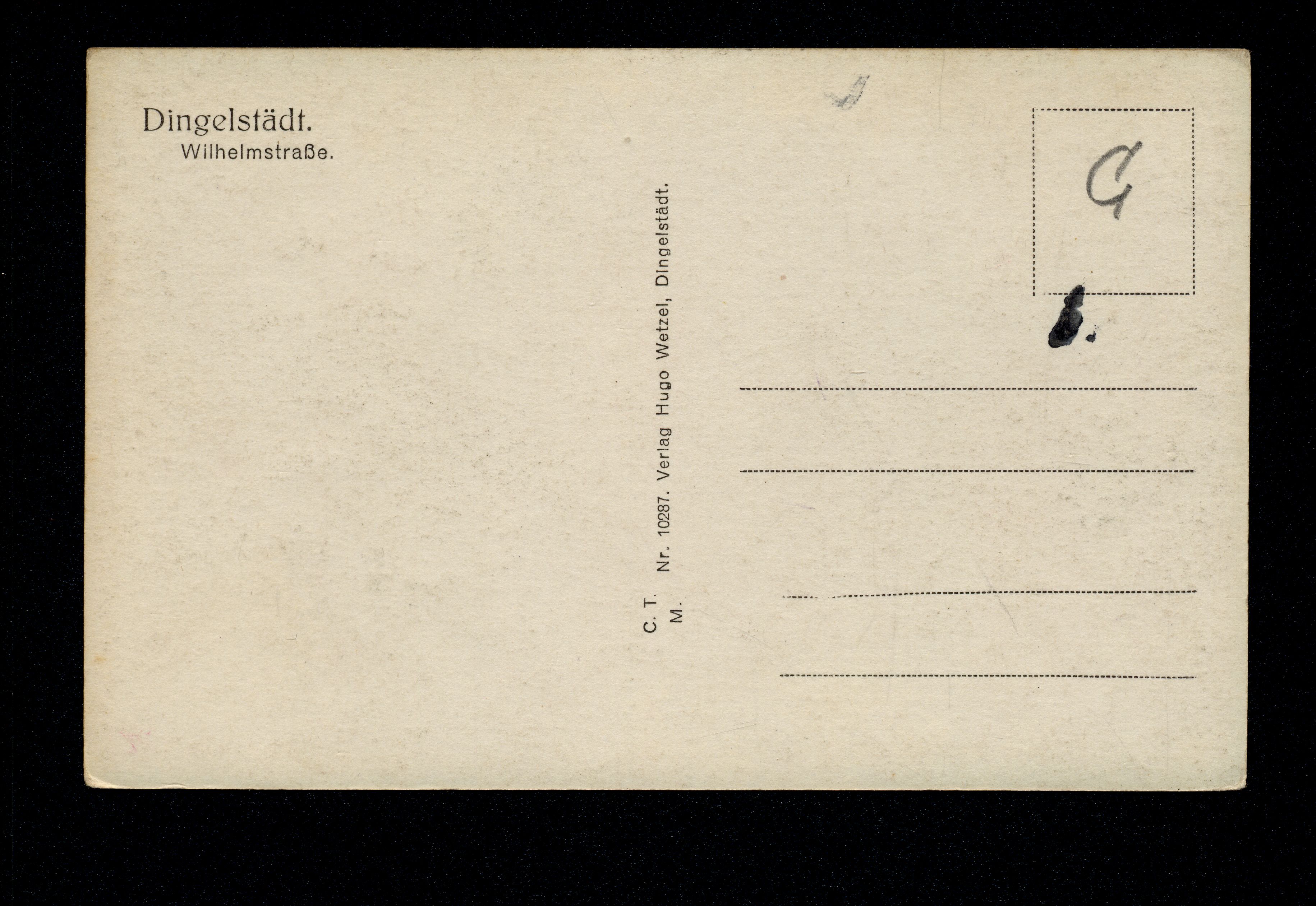 Ort Dingelstädt Motive Wilhelmstraße Format klein Verlag Hugo Wetzel, Dingelstädt Bestell- oder Individualnummer Nr. 10287 Tags Hôtel Berliner Hof