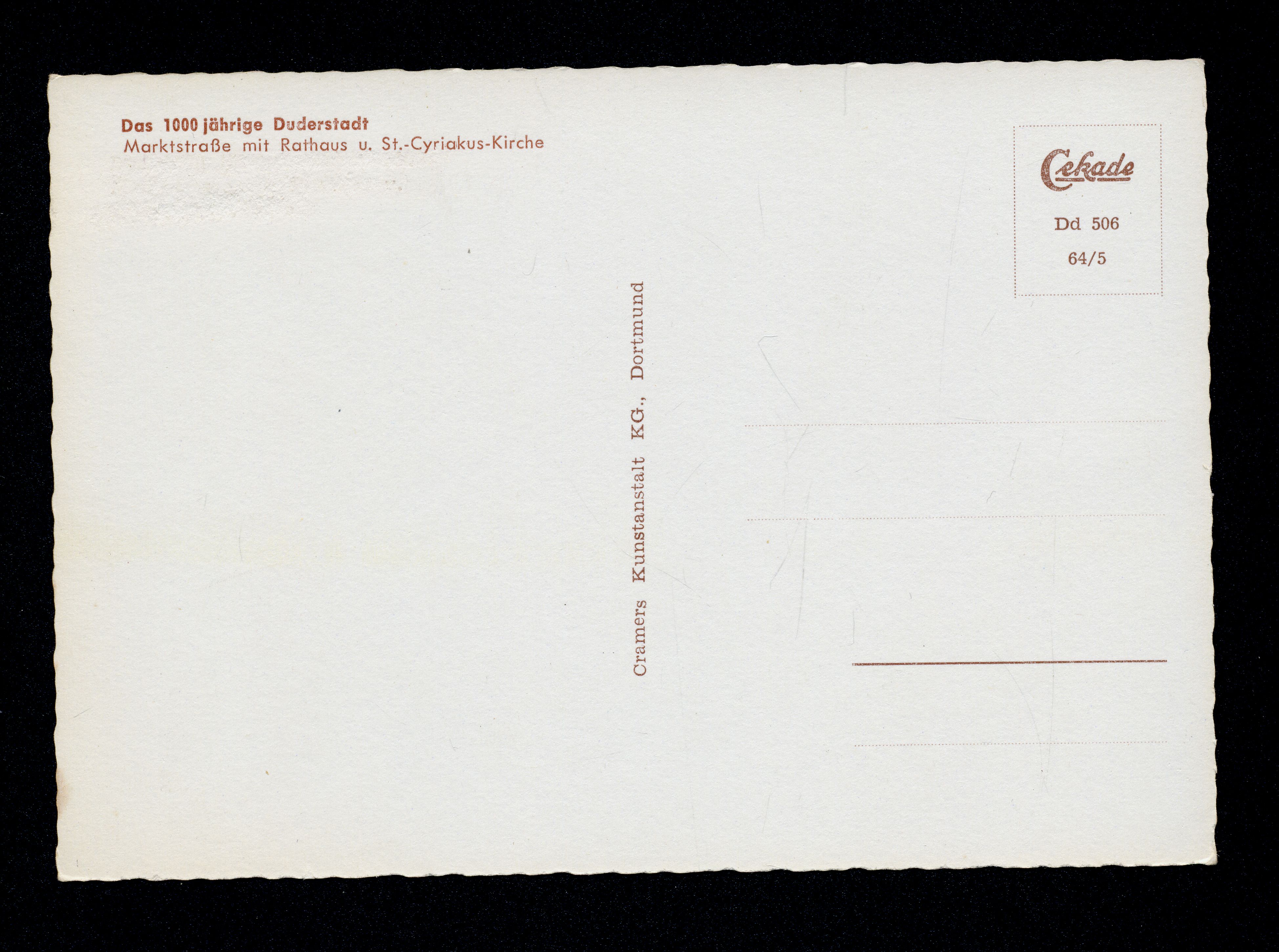 Ort Duderstadt Motive Marktstraße mit Rathaus und St.-Cyriakus-Kirche Format groß Jahr 1963 Verlag Cramers Kunstanstalt, Dortmund Bestell- oder Individualnummer Dd 506 64/5 Tags Central-Theater Kino Foto Gratze