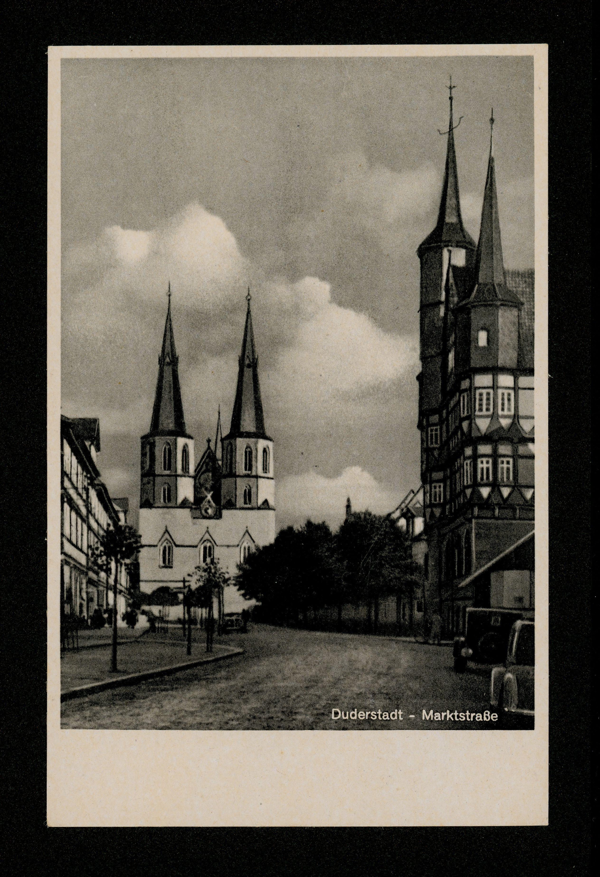 Ort Duderstadt Motive Marktstraße Format klein Verlag Aloys Mecke, Duderstadt Bestell- oder Individualnummer Nr. 909 z 75 Tags St. Cyriakus Rathaus