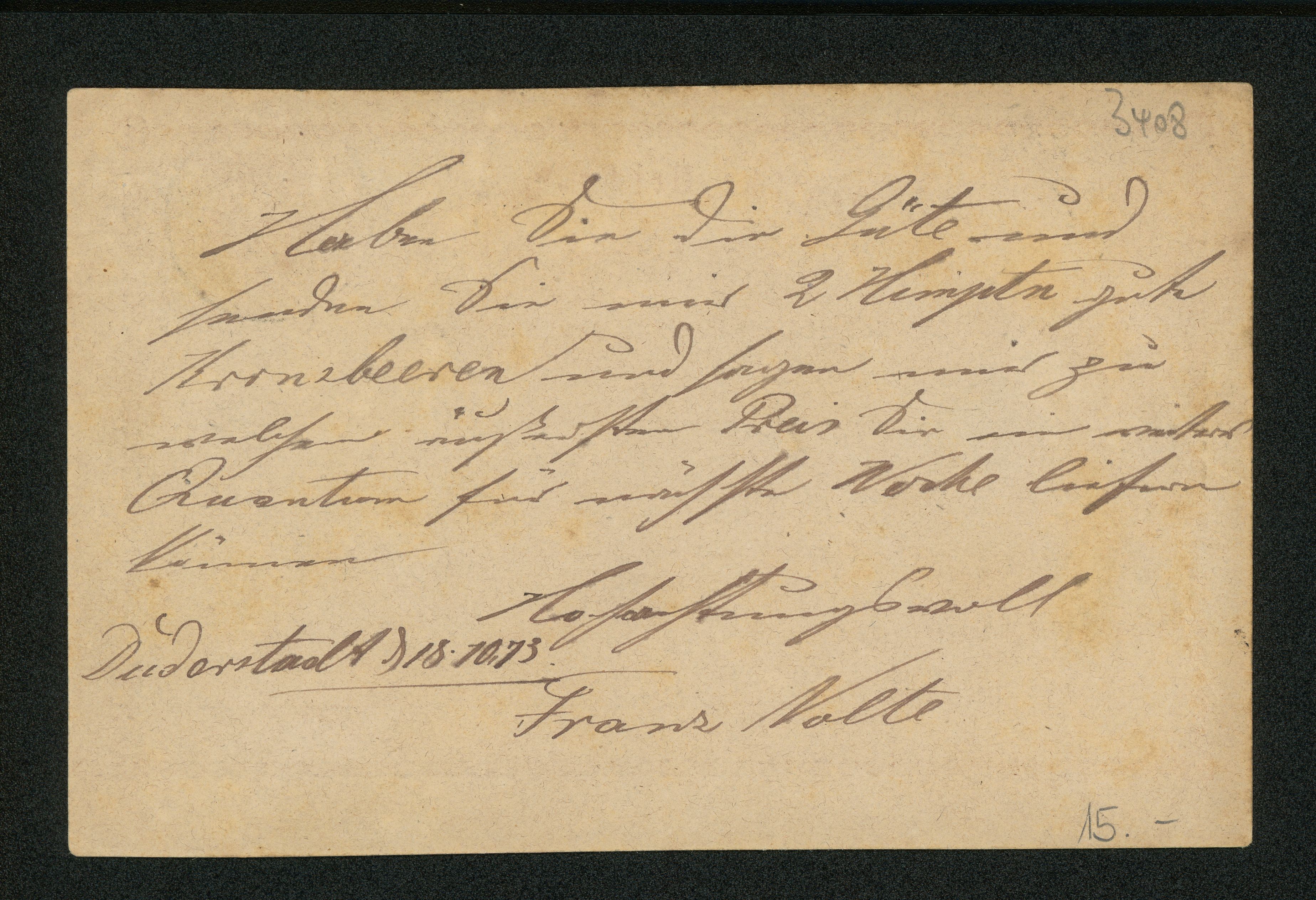 Ort Duderstadt Motive Ganzsache Deutsche Reichs-Post. Postkarte. Format klein Jahr 1873 Verlag - Bestell- oder Individualnummer - Versanddatum 19.10.1873