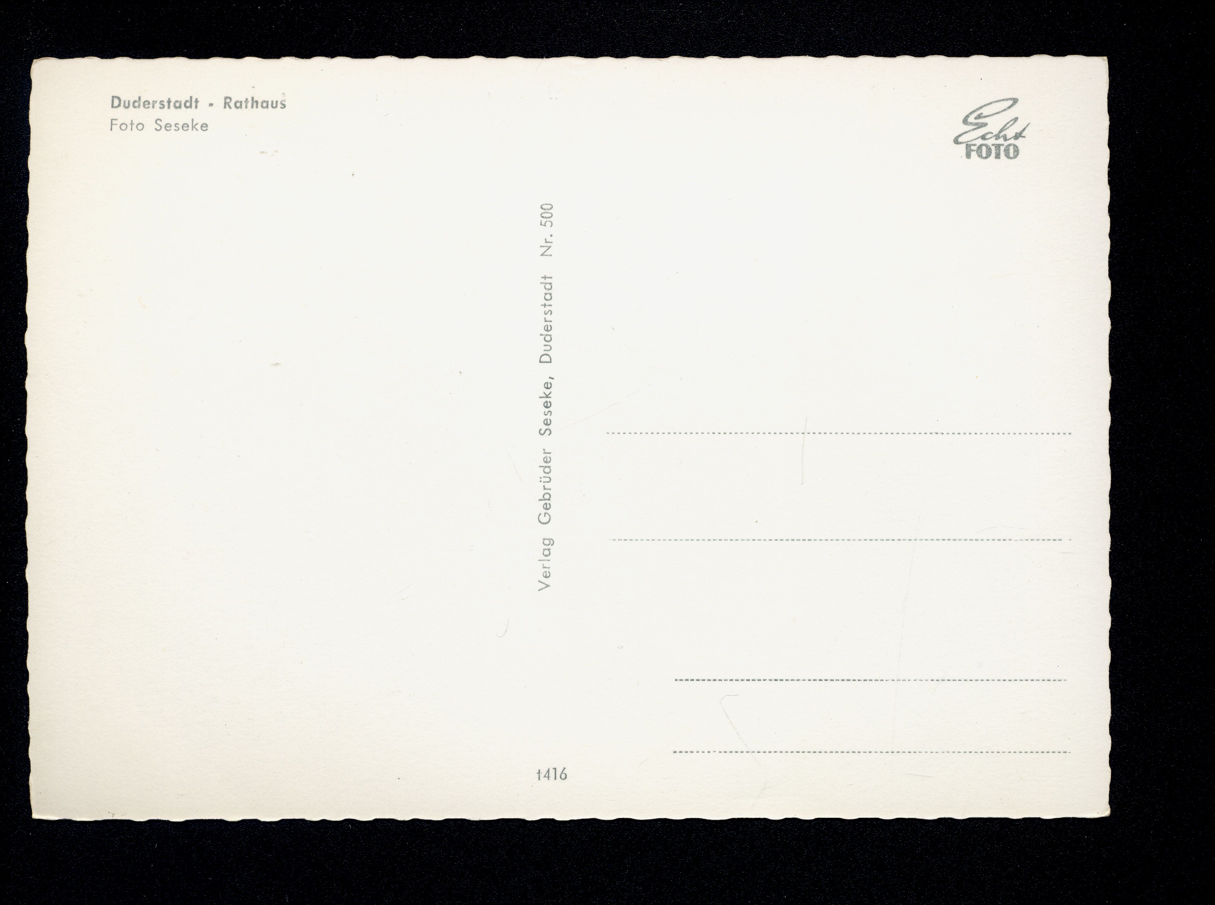 Ort Duderstadt Motive Rathaus Format groß Verlag Gebrüder Seseke, Duderstadt Bestell- oder Individualnummer Nr. 500 t416