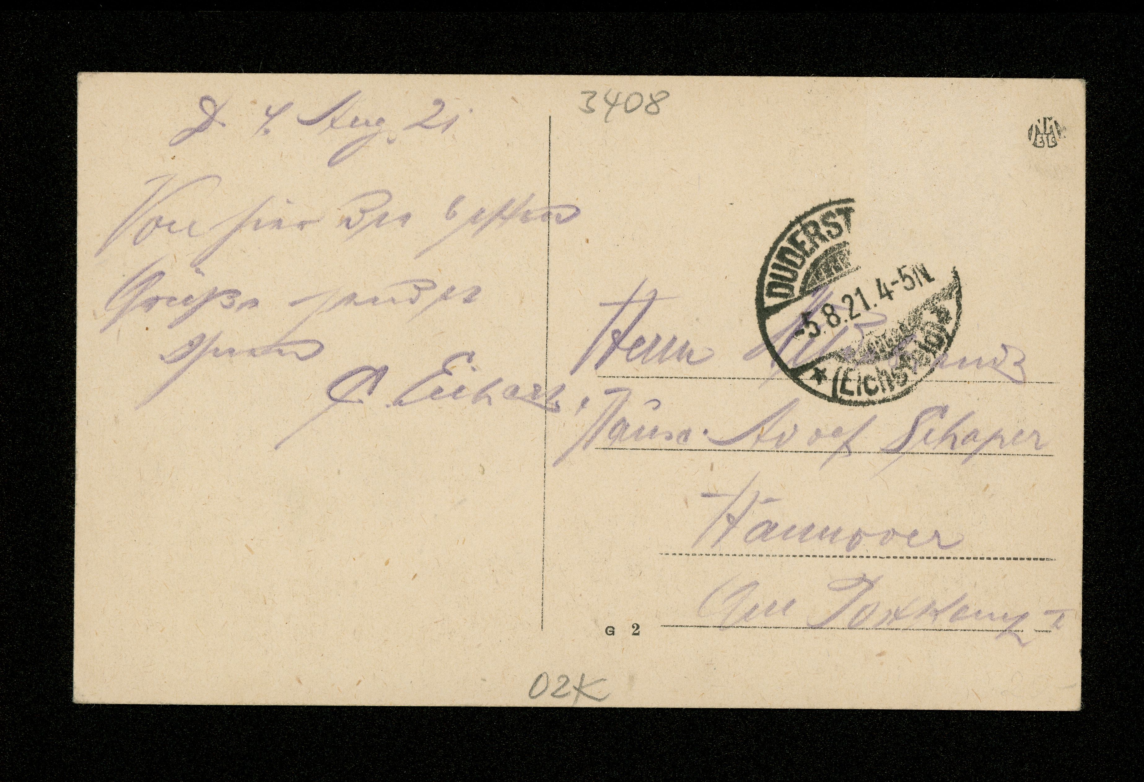 Ort Duderstadt Motive Forsthaus Rotewarte bei Duderstadt Format klein Jahr 1921 Verlag - Bestell- oder Individualnummer G 2 Versanddatum 05.08.1921 Tags Rote Warte Gasthaus