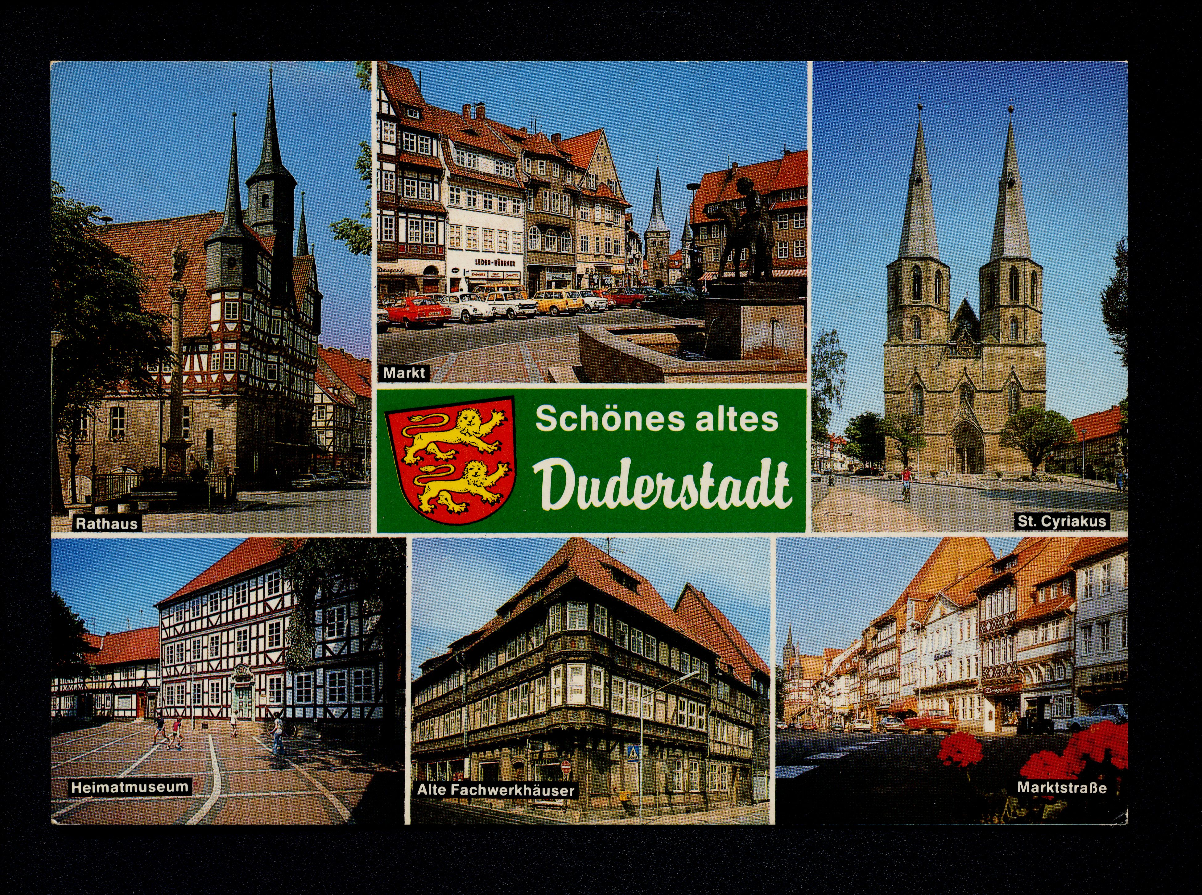 Ort Duderstadt Motive Rathaus Heimatmuseum Markt Alte Fachwerkhäuser St. Cyriakus Marktstraße Format groß Jahr 1986 Verlag Cramers Kunstanstalt, Dortmund Bestell- oder Individualnummer Dd 527 86/3