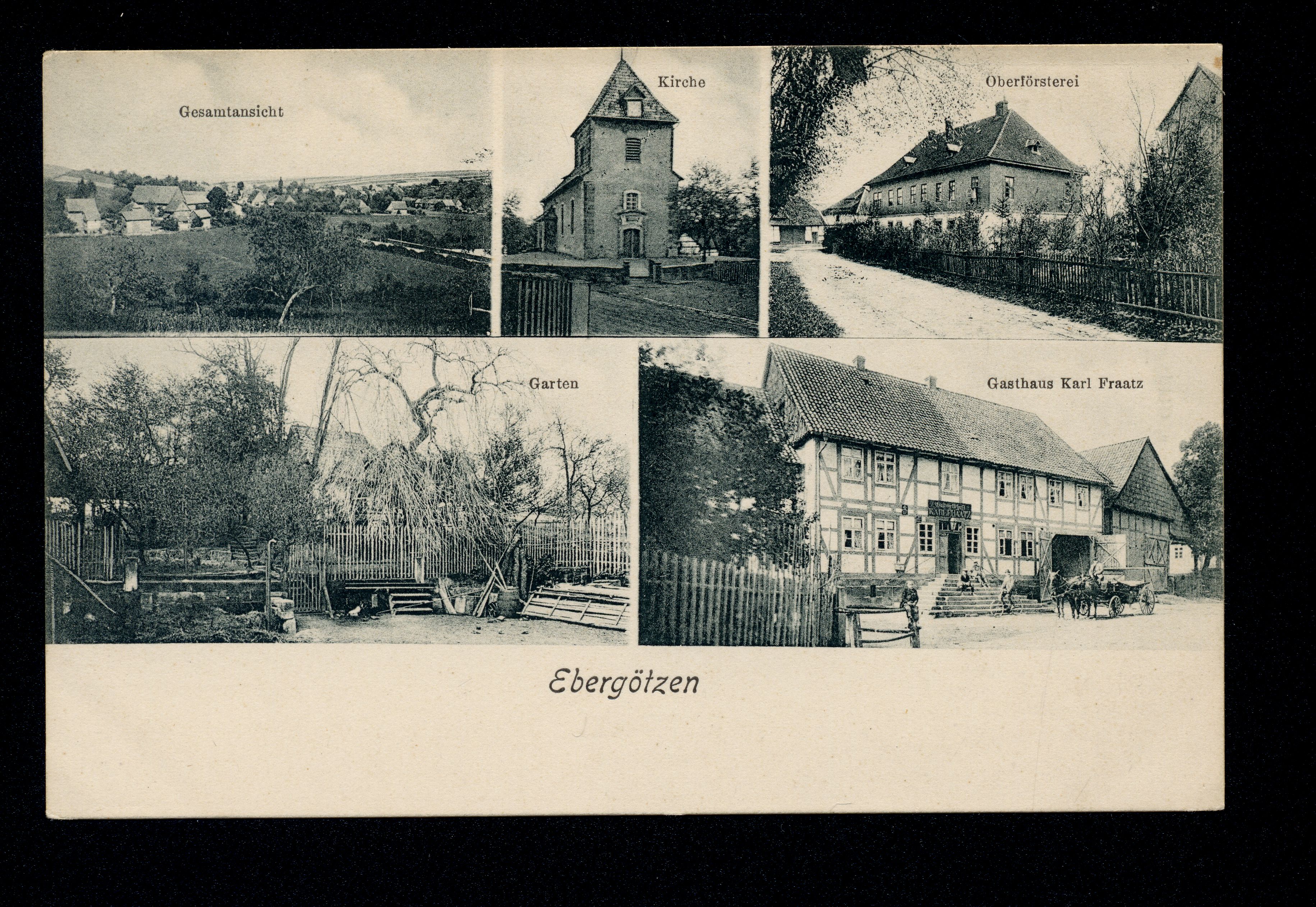 Ort Ebergötzen Motive Gesamtansicht Kirche Oberförsterei Garten Gasthaus Karl Fraatz Format klein Verlag H. Lange, Göttingen Bestell- oder Individualnummer -