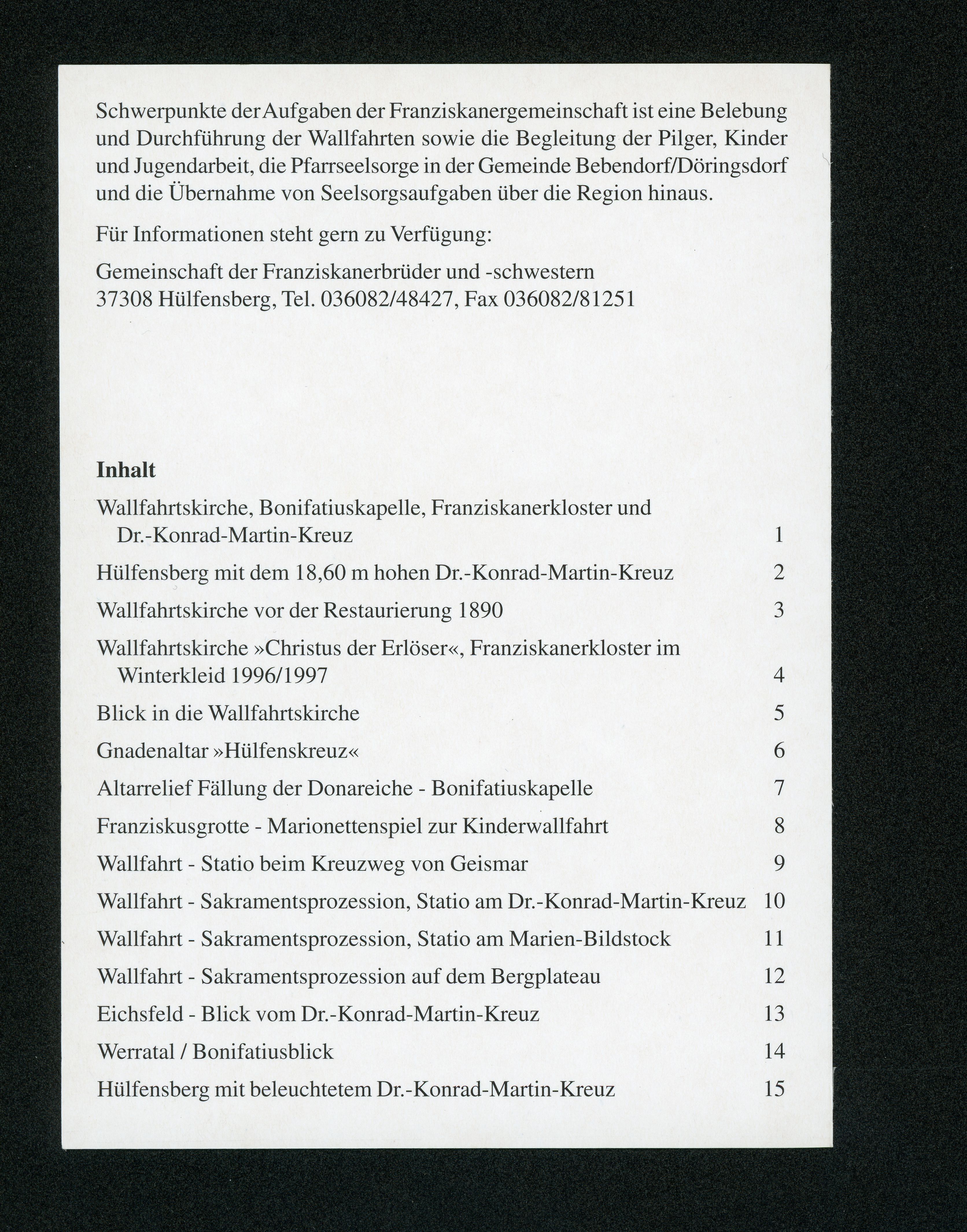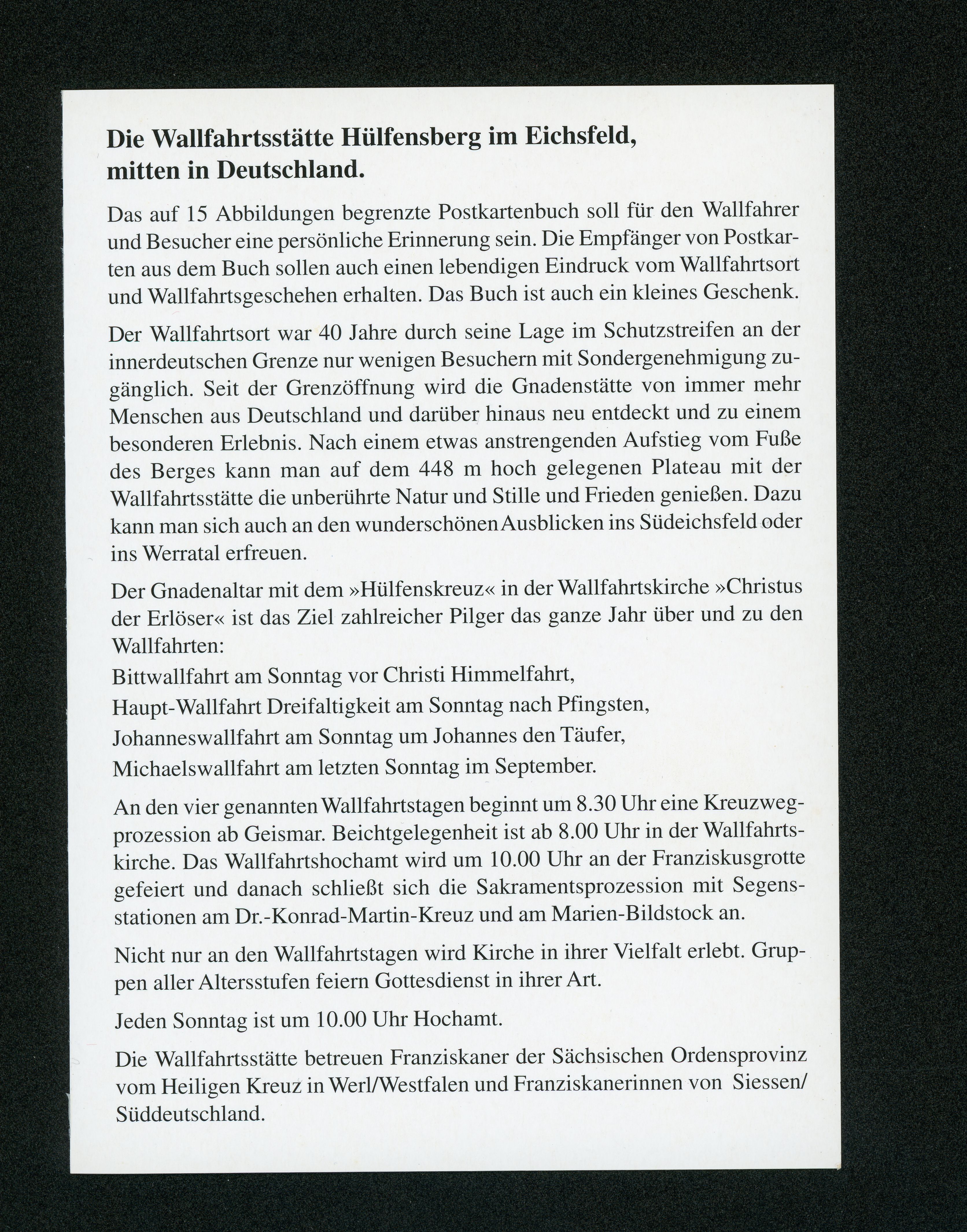 Herausgegeben vom Förderkreis Hülfensberg, 37308 Hülfensberg