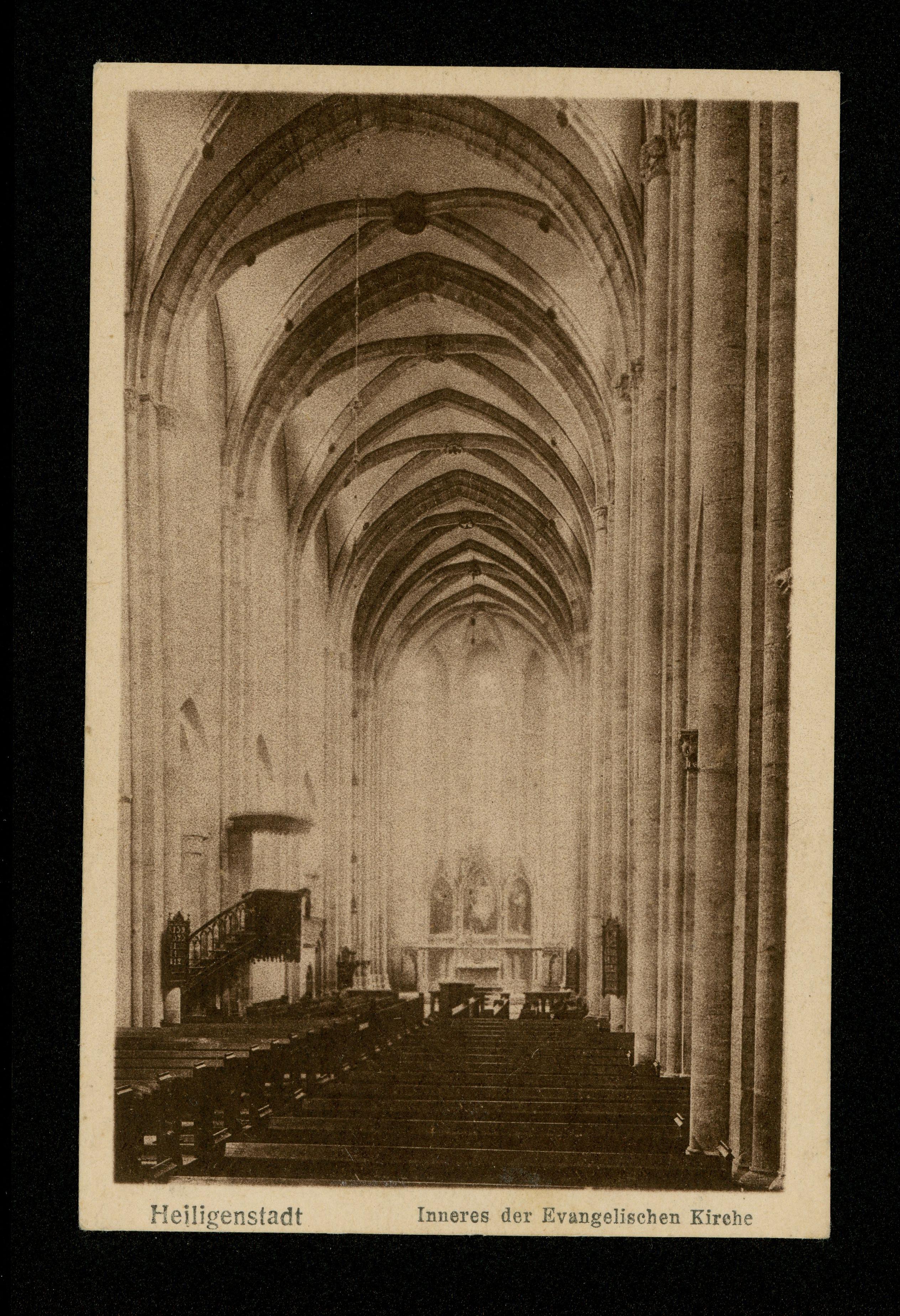 Ort Heiligenstadt Motive Inneres der Evangelischen Kirche Format klein Jahr 1919 Verlag Albert Multhauf, Heiligenstadt Bestell- oder Individualnummer 7851 2. 19.