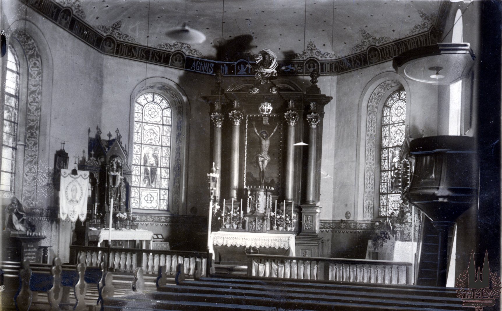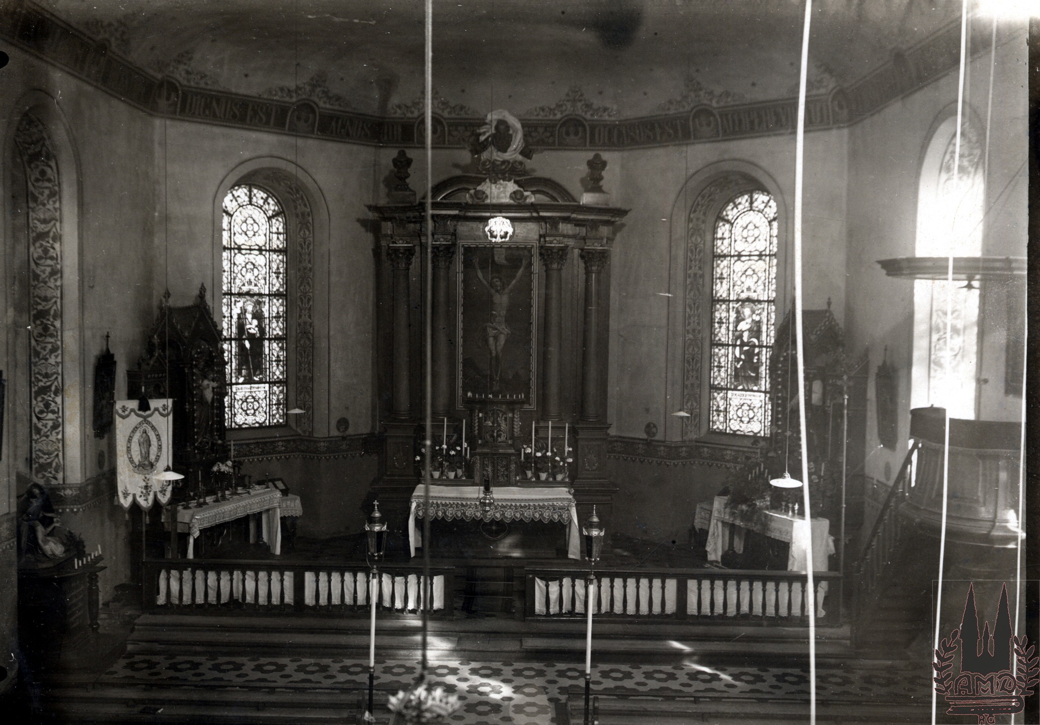 Ort Hilkerode - Belege Beschreibung originales Foto Sammlung: H.M.D. Motive Kirche Schule Kriegerdenkmal Innenansicht der Kirche Format Sonderformat Verlag Aloys Mecke, Duderstadt Bestell- oder Individualnummer - Tags Bildarchiv "Verlag Aloys Mecke Duderstadt" Altar