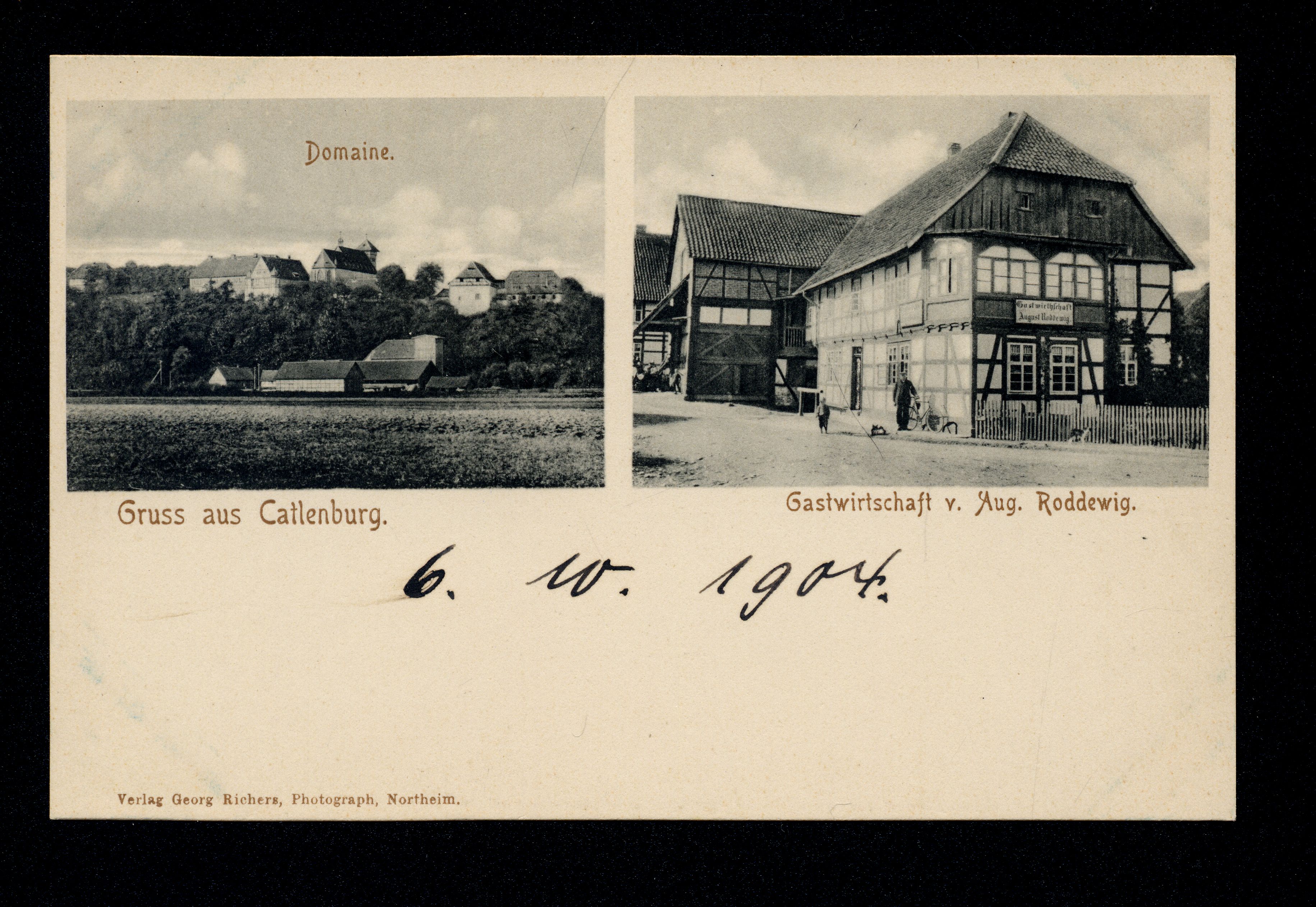 Ort Katlenburg Motive Domäne Gastwirtschaft v. Aug. Roddewig Format klein Jahr 1904 Verlag Georg Richers, Northeim Bestell- oder Individualnummer - Tags Wachenhäuser Straße
