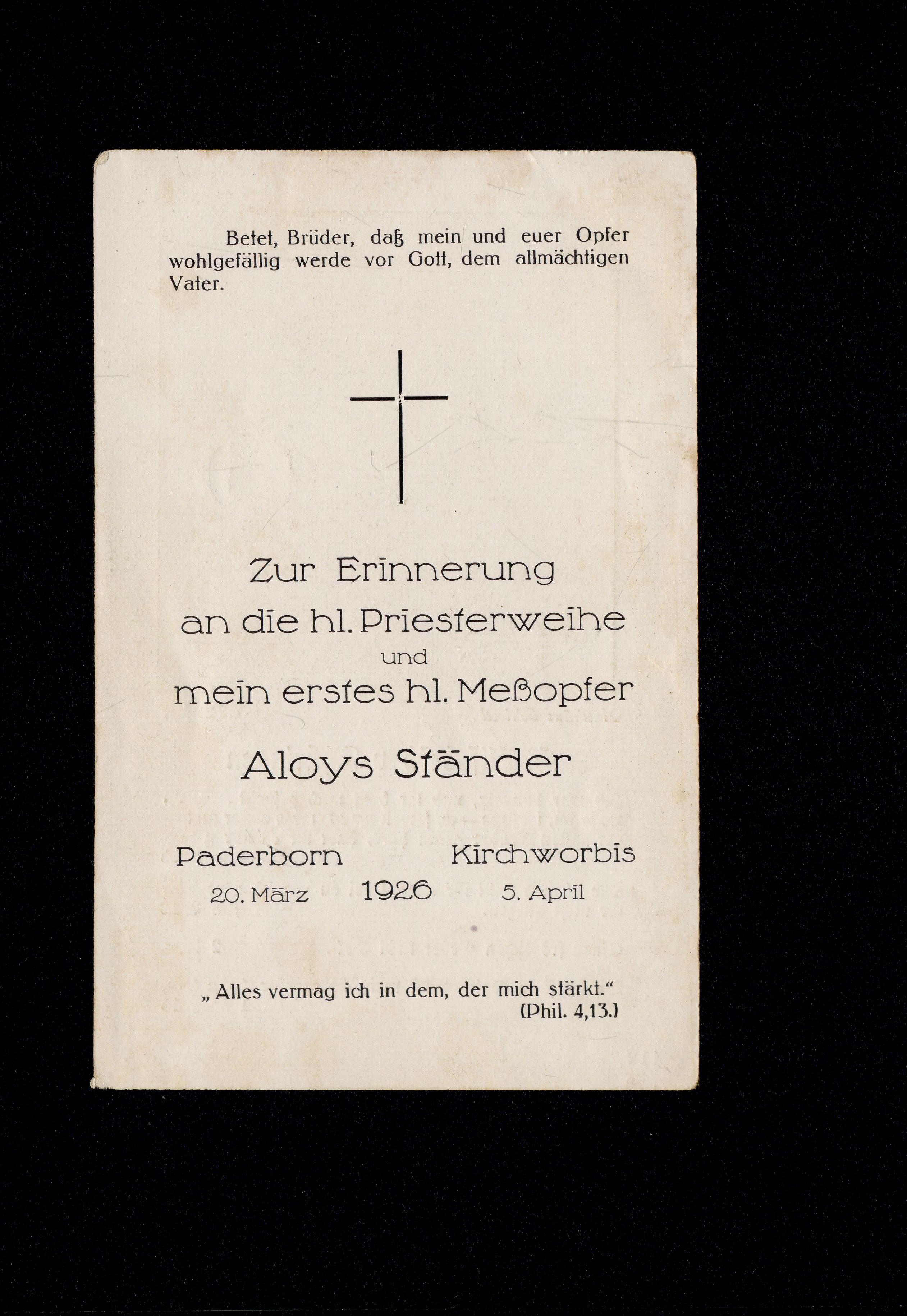 Ort Kirchworbis - Belege Motive Aloys Ständer, Priesterweihe und erstes hl. Meßopfer 1926 Format Sonderformat Jahr 1926 Verlag - Bestell- oder Individualnummer 412 Tags Paderborn Heilige Elisabeth von Thüringen