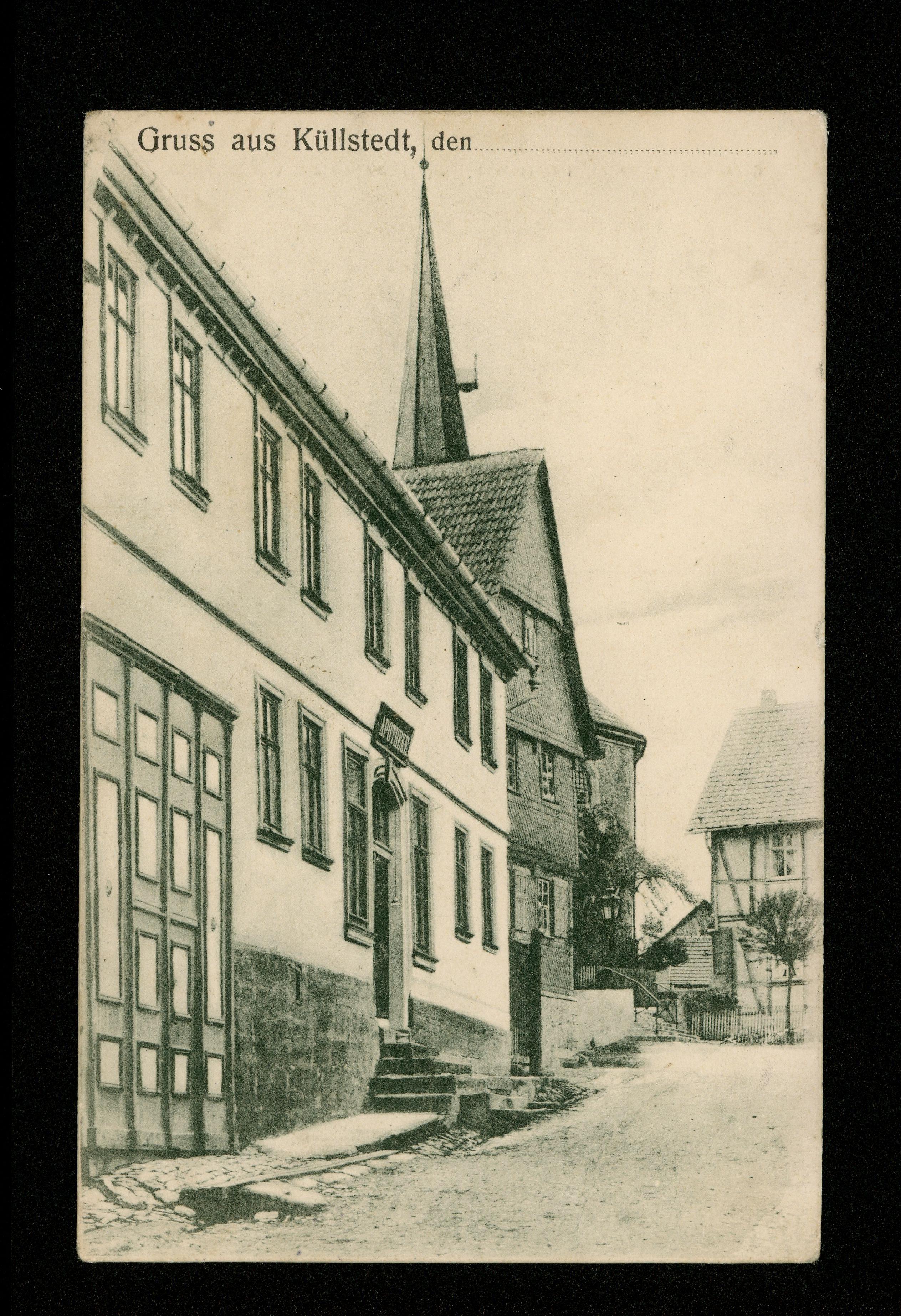 Ort Küllstedt Motive Apotheke Format klein Jahr 1906 Verlag August Strecker, Küllstedt (Aug. Strecker, Gasthaus zum Lindenhof) Bestell- oder Individualnummer - Versanddatum 02.07.1908