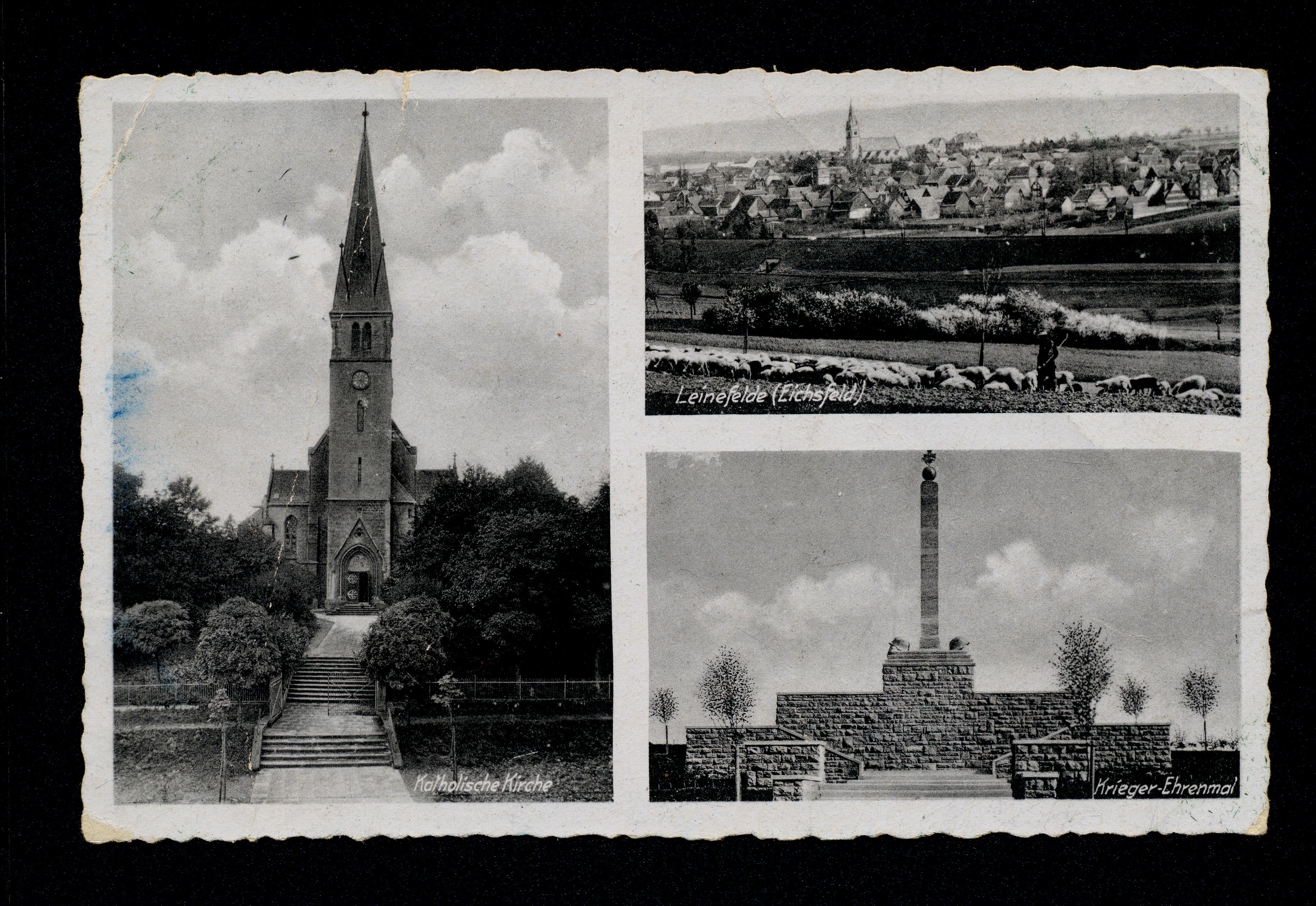 Ort Leinefelde Motive Katholische Kirche Panorama Krieger-Ehrenmal Format klein Verlag Carl Thoericht, Hann.-Münden (Karl Thoericht) (CTM) Bestell- oder Individualnummer 14278 541 X 590476 Tags Kriegerdenkmal Schafherde Schäfer