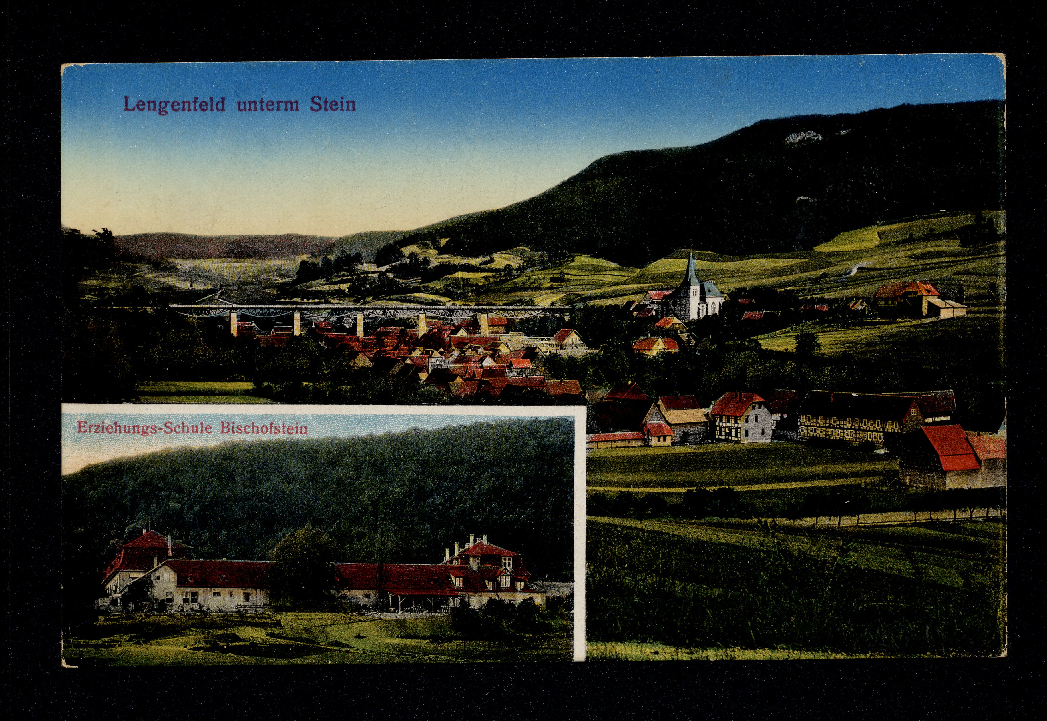 Ort Lengenfeld unterm Stein Motive Panorama Erziehungs-Schule Bischofstein Format klein Jahr 1914 Verlag Heinrich Hardegen, Lengenfeld u. Stein Bestell- oder Individualnummer 4565 8. 14. 155475