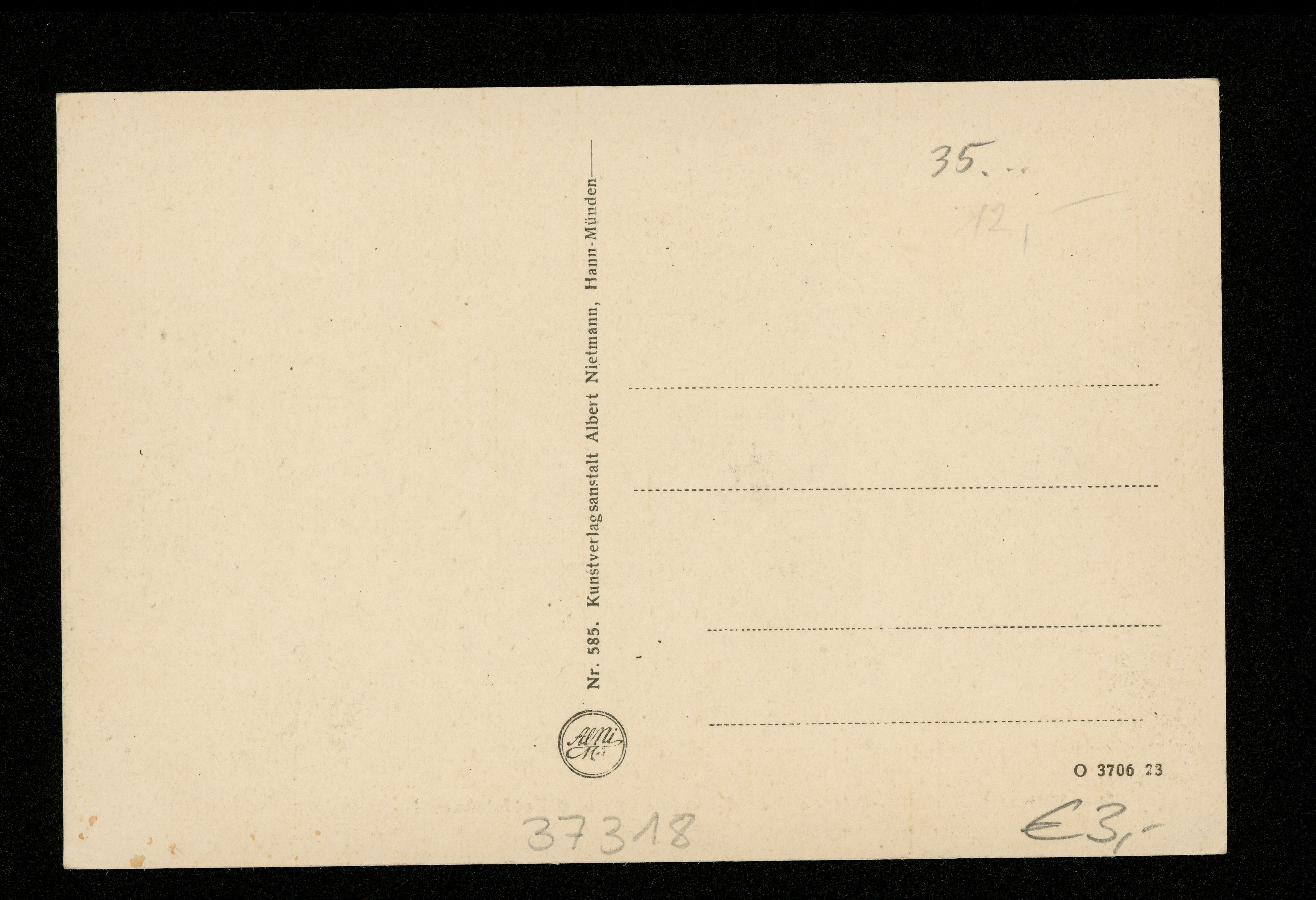 Ort Lindewerra Motive Blick auf das Dorf Lindewerra und Teufelskanzel Format klein Jahr 1923 Verlag Albert Nietmann, Hann-Münden (AlNiMü) Bestell- oder Individualnummer Nr. 585 O 3706 23