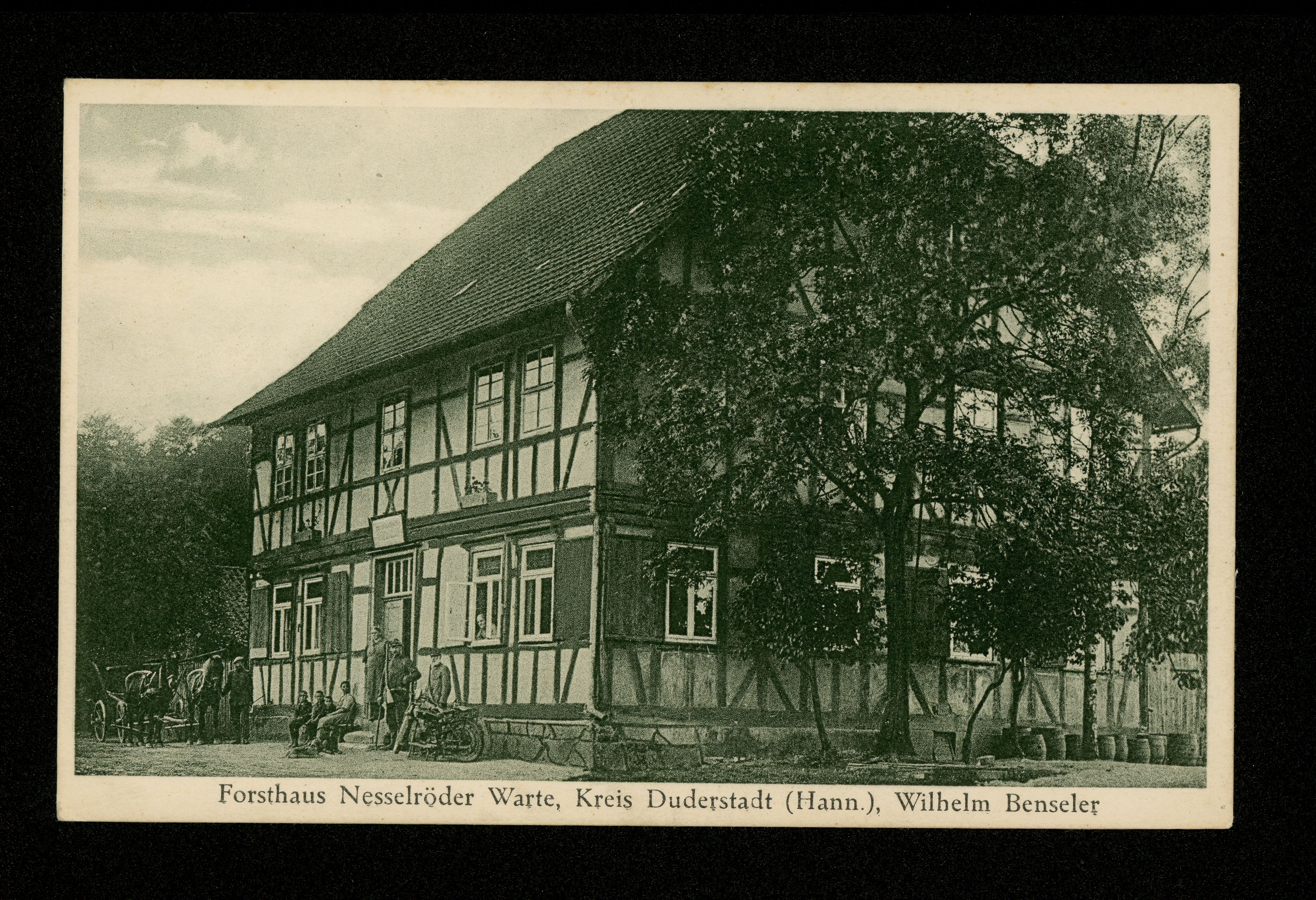 Ort Nesselröden Motive Forsthaus Nesselröder Warte, Kreis Duderstadt ''Hann.'', Wilhelm Benseler Format klein Verlag - Bestell- oder Individualnummer K 88 Tags Pferdefuhrwerk Gasthaus