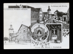 Geschäftshaus Gottfried Richardt, Dorfstrasse mit Kirche, Grotte Sancta Maria (Mariengrotte), Grotte ''Lengenfelder Straße'' |