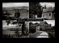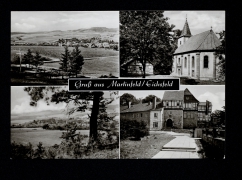 Teilansicht, Dorfplatz, Blick in die Konsum-Gaststätte, Blick zur Kirche, Marien-Grotte |