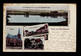 Bernshausen mit dem Seeburger See, Kirche, Dorfstrasse, Knöchelmann's Gastwirtsch. |
