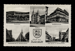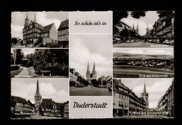 Rathaus, Wall-Anlagen, Westerturm, Marktstraße, Blick auf Duderstadt, Blick auf Servatiuskirche, Marktstraße mit St. Cyriakuskirche und Mariensäule |