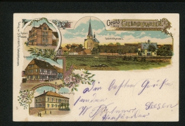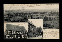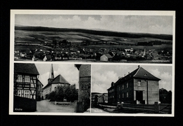 Totalansicht, Gasthof z. Post Ww. Henkel, Schule, Kirche |