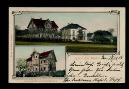 Panorama, Dorfstrasse u. Kaufhaus Th. Kiel, Kaufmann H. Schormann, Kirche, Gastwirthschaft Carl Renneberg & Wwwe H. Friedrichs, Dorfstrasse u. Gastwirthschaft Fr. Peinemann |