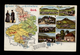 Alte Eichsfelder Tracht, Landkarte, Heiligenstadt, Uder, Iberg, Rusteberg / Rüsteberg, Hanstein, Wasserfall-Scheuche |