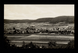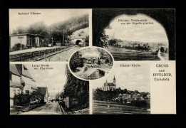 Bahnhof Effelder, Effelder, Totalansicht aus der Kapelle gesehen, Lange Straße mit Pfarrhaus, Effelder Kirche, Tunnel bei Effelder |