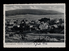 Bahnhofstraße, Amtsgerichtsgebäude, Sparkasse, Bahnhof, Totalansicht, Postamt, Schützenhaus, Kriegerdenkmal, Partie aus dem Gräfental, Schule |