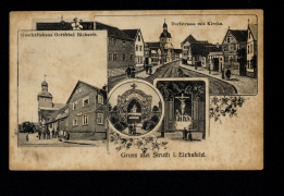 Struth Geschäftshaus Gottfried Richardt, Dorfstrasse mit Kirche, Grotte Sancta Maria (Mariengrotte), Grotte ''Lengenfelder Straße''