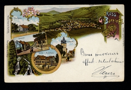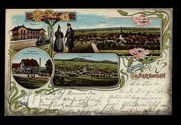 Antoniuskapelle, Total-Ansicht, Oelbergs-Grotte, Hotel zur Post A. Weber, Hotel zum deutschen Kaiser H. Dunkel, Gebr. Müller, Bahnhof, Pfarrkirche |