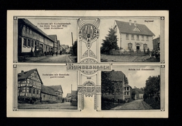Dorfstrasse mit Kaufmannschaft des Herrn Bode und Wirtschaft Mollenhauer, Kaplanei, Dorfstrasse mit Gemeindegastwirtschaft, Schule und Schulzenamt |