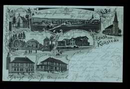 Gesamtansicht, Kirche und Schule, Bahnhof |