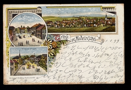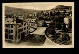 Ursulinerin-Kloster, Total-Ansicht, Rathhaus, Obere Marktstrasse, kath. Kirche, Rathhaus, Spiegelbrücke m. Westerthurm, Bahnhofstr. mit evangl. Kirche |