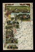 Totalansicht von Dingelstädt, Totalansicht vom Kerbschenberge, Franziskaner Kirche u. Kloster, Inneres der Klosterkirche, Oelbergs Grotte, Grotte der drei schlafenden Jünger |