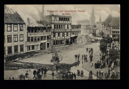 Brennende und eingestürzte Häuser am Markt |