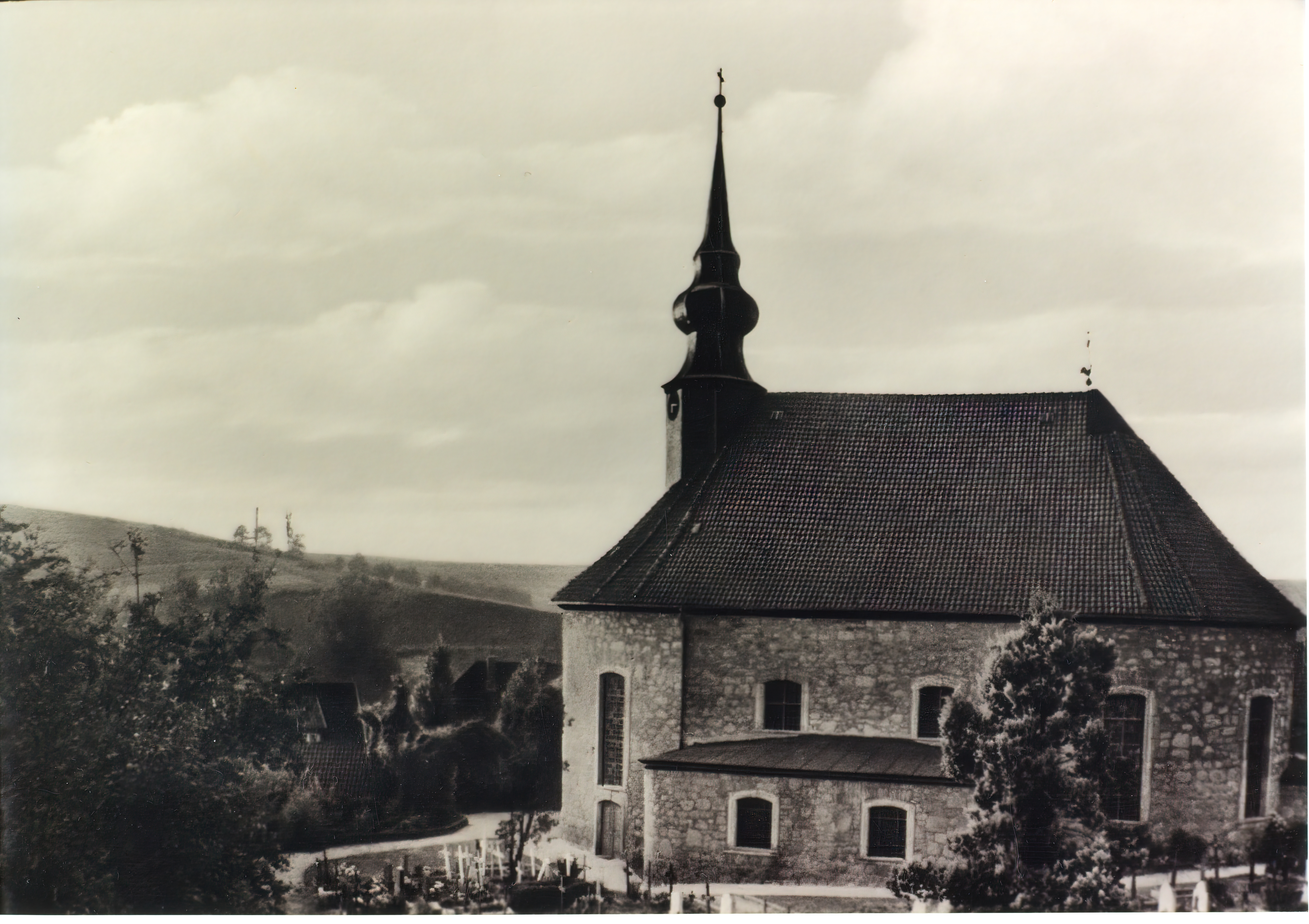 Ort Rhumspringe - Belege Beschreibung originales Foto Erbaut: 1822 Abgerissen: 1976 Motive Kirche Format Sonderformat Verlag - Bestell- oder Individualnummer - Tags Kriegerdenkmal Altar Kirchenglocken Muttergottes Grotte Friedhof