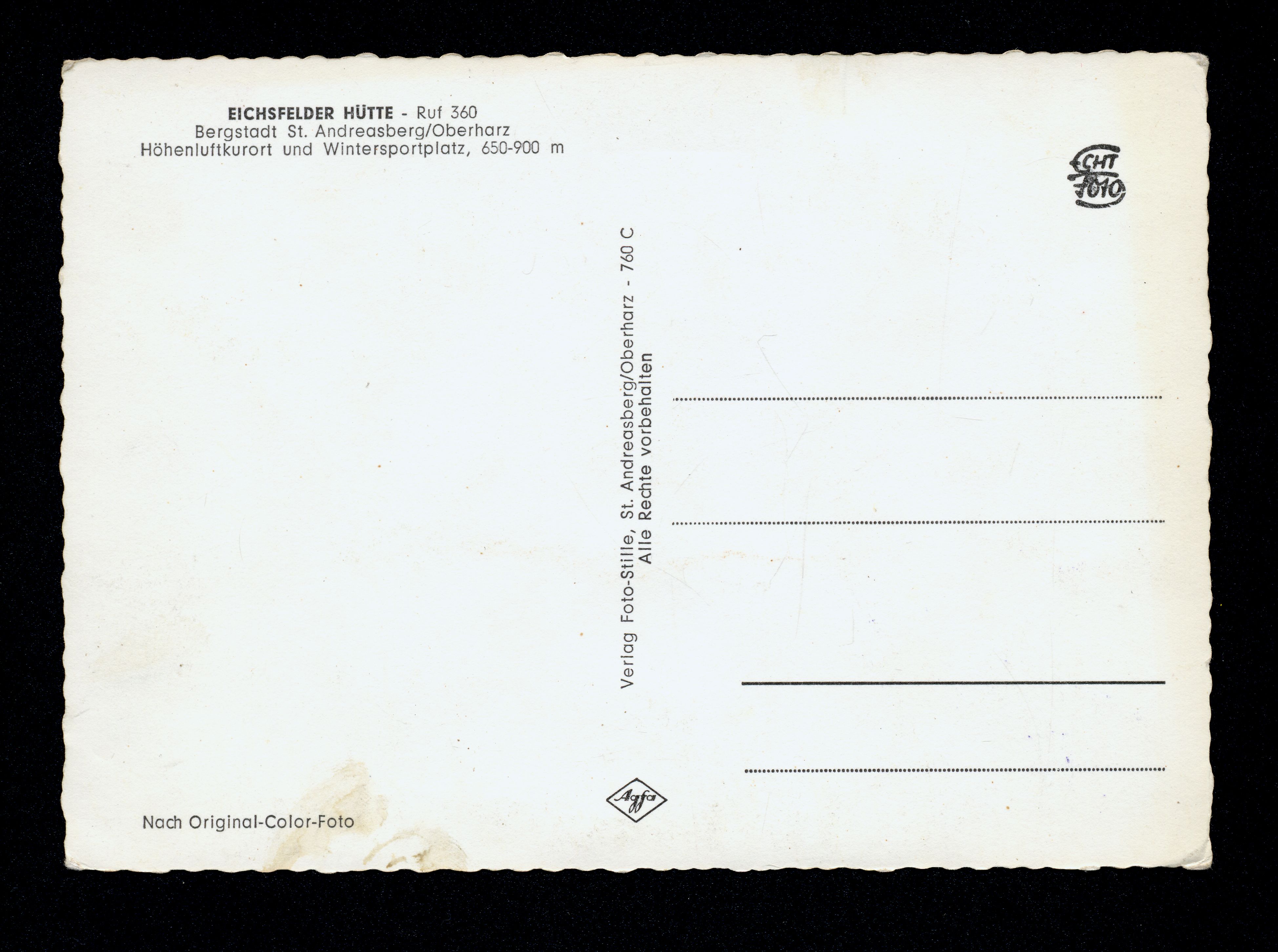 Ort St. Andreasberg Motive Eichsfelder Hütte Format groß Verlag Werner Stille, St. Andreasberg/Oberharz Bestell- oder Individualnummer 760 C Tags Schullandheim des Landkreises Göttingen Jugendherberge