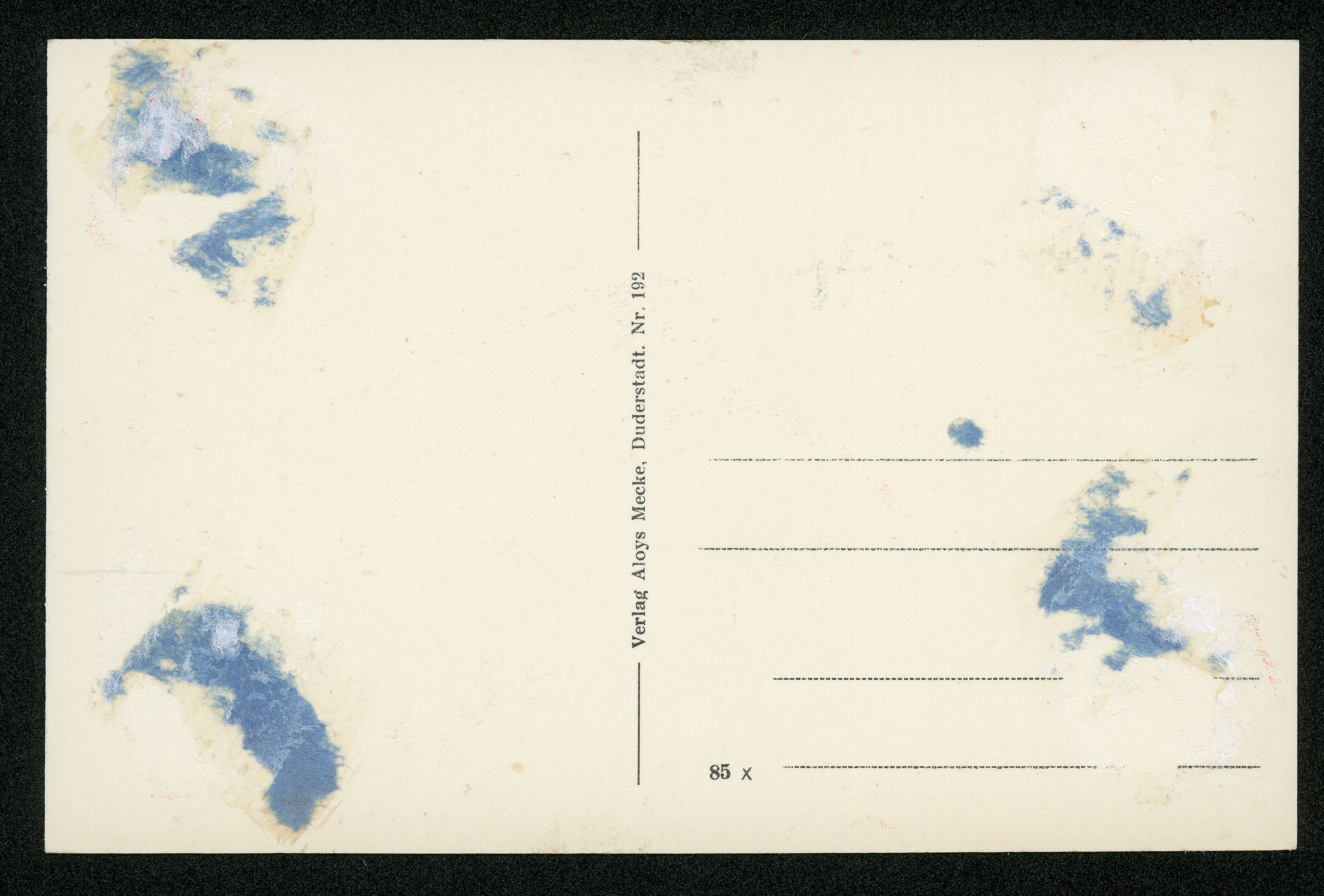 Ort Weißenborn-Lüderode Beschreibung Variante "blau" Sammlung: H.M.D. Motive Teilansicht Lüderode Kriegerdenkmal Weißenborn Format klein Verlag Aloys Mecke, Duderstadt Bestell- oder Individualnummer Nr. 192 85 x