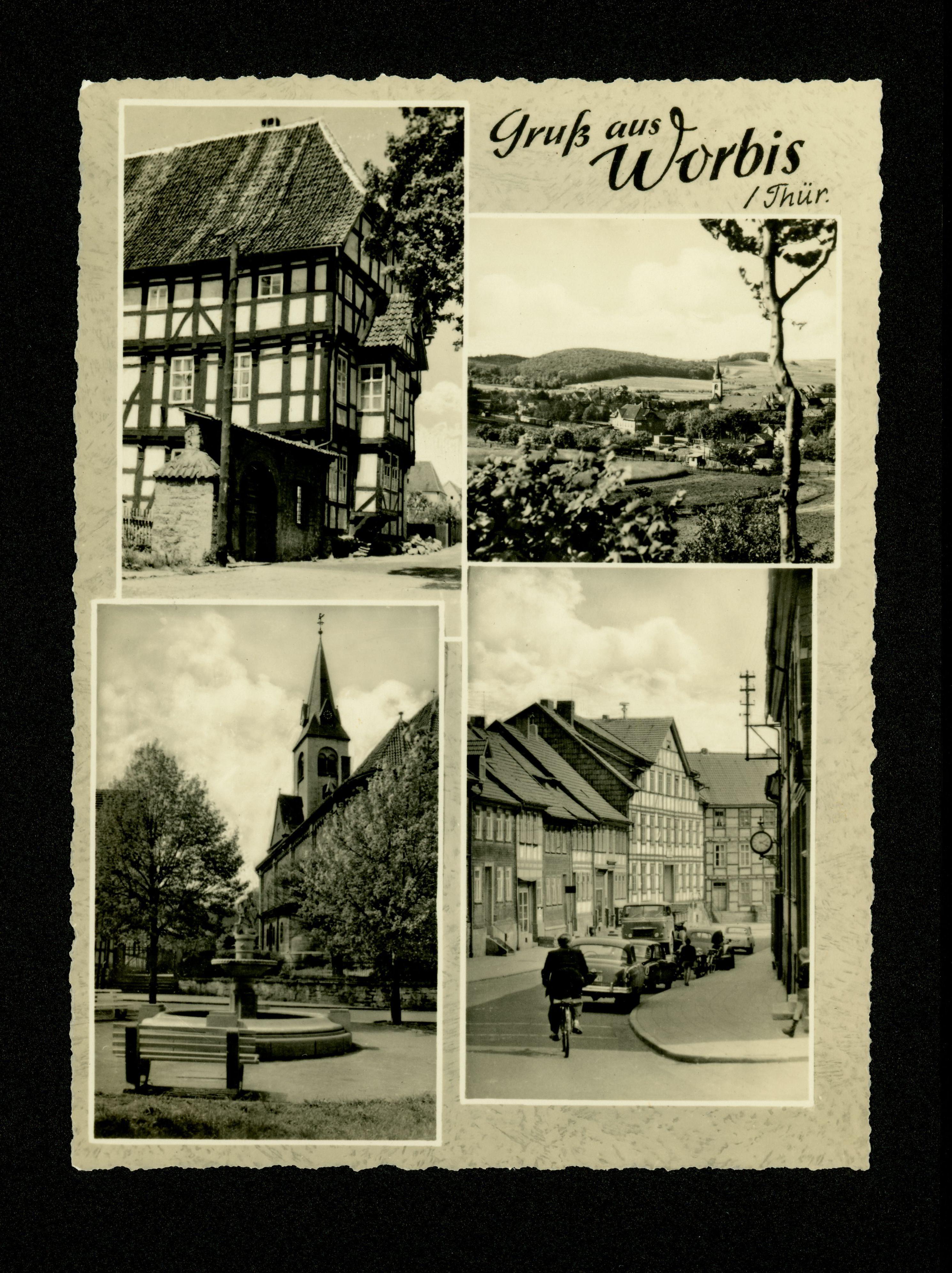Ort Worbis Motive Marktbrunnen Krengeljäger Teilansicht Straßenansicht Rathaus Format groß Jahr 1964 Verlag Osburg, Worbis Bestell- oder Individualnummer 9805/533 III/18/117 K 2/64
