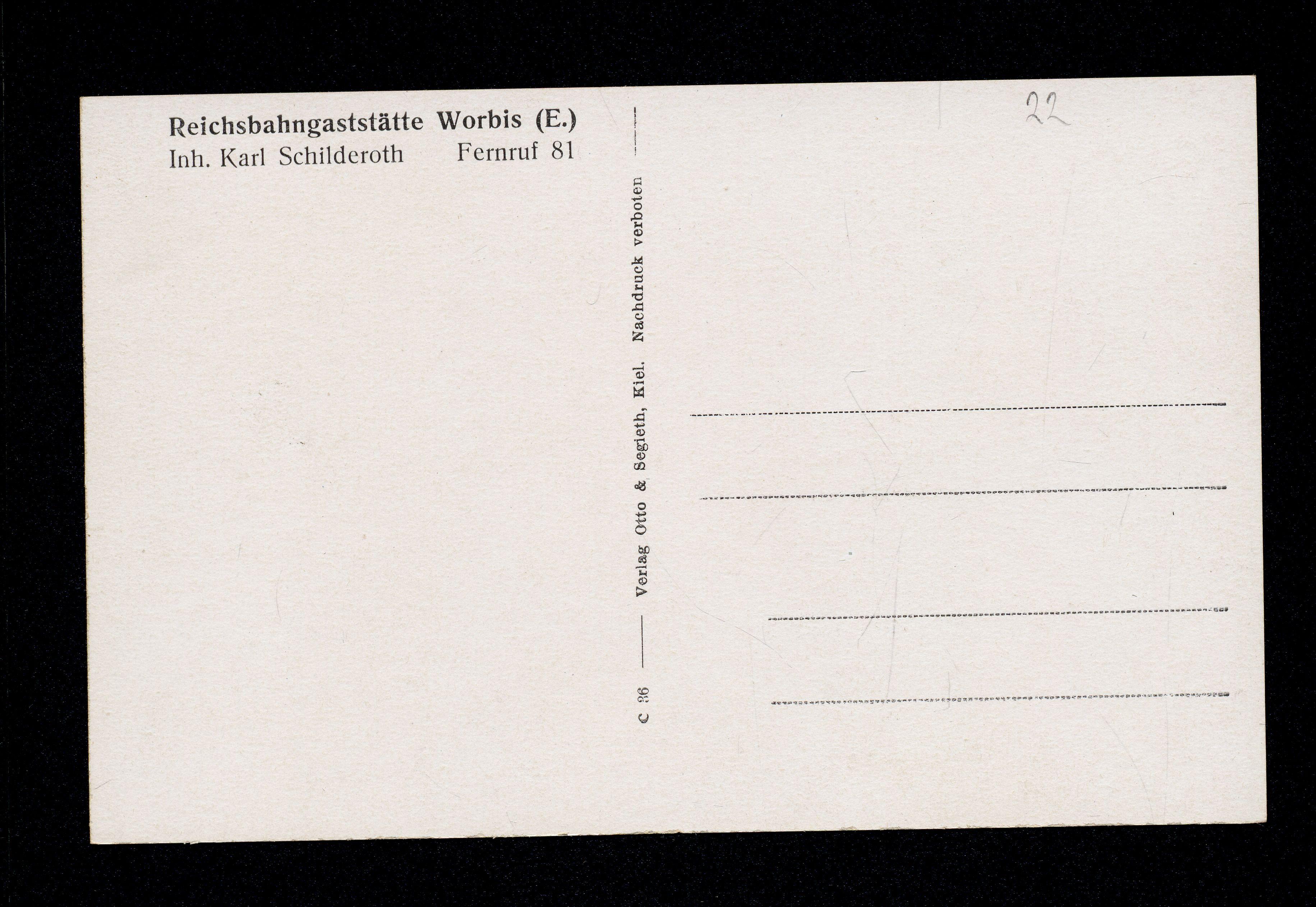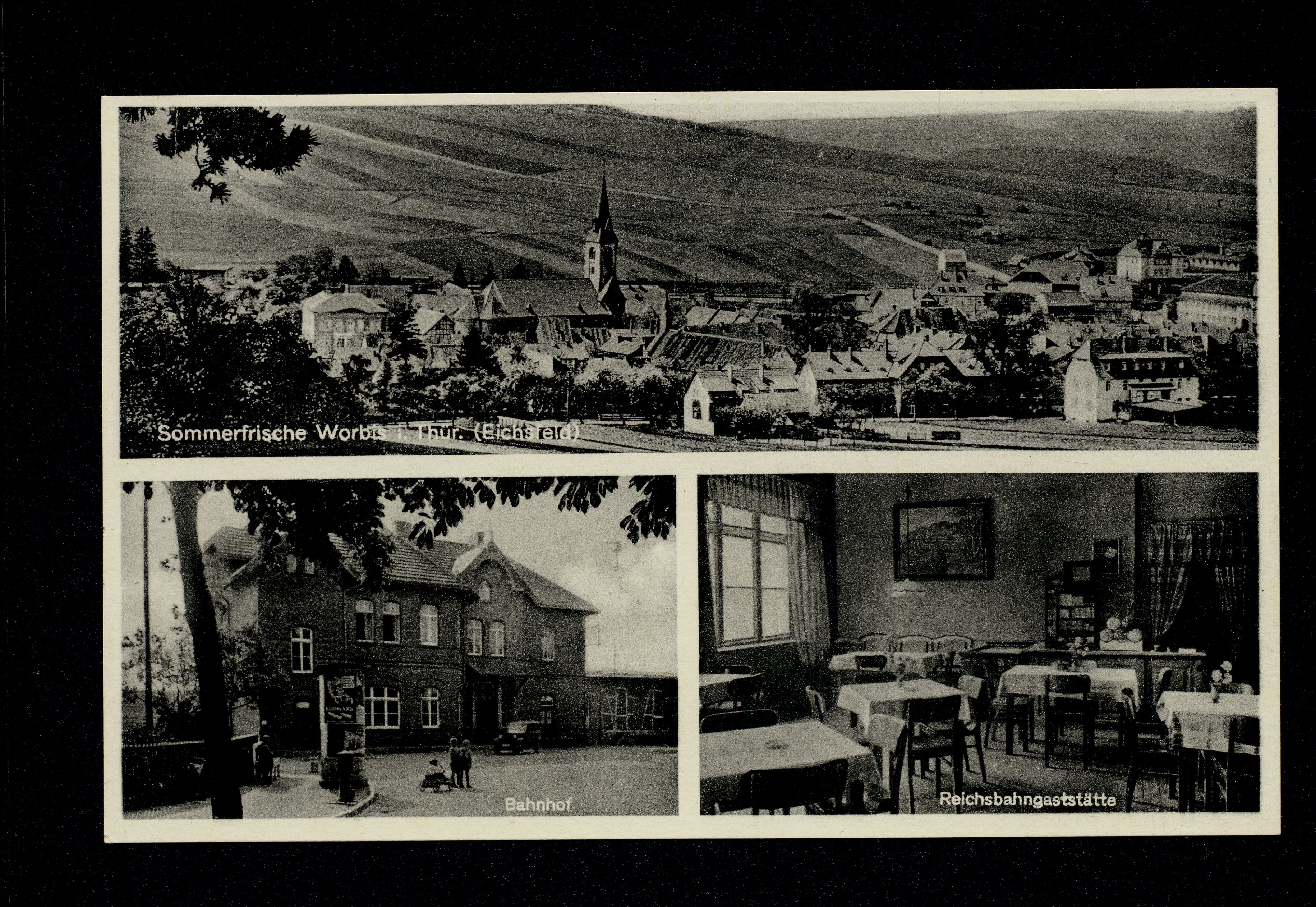 Ort Worbis Motive Teilansicht Bahnhof Reichsbahngaststätte Format klein Verlag Otto & Segieth, Kiel Bestell- oder Individualnummer c 36 Tags Karl Schilderoth