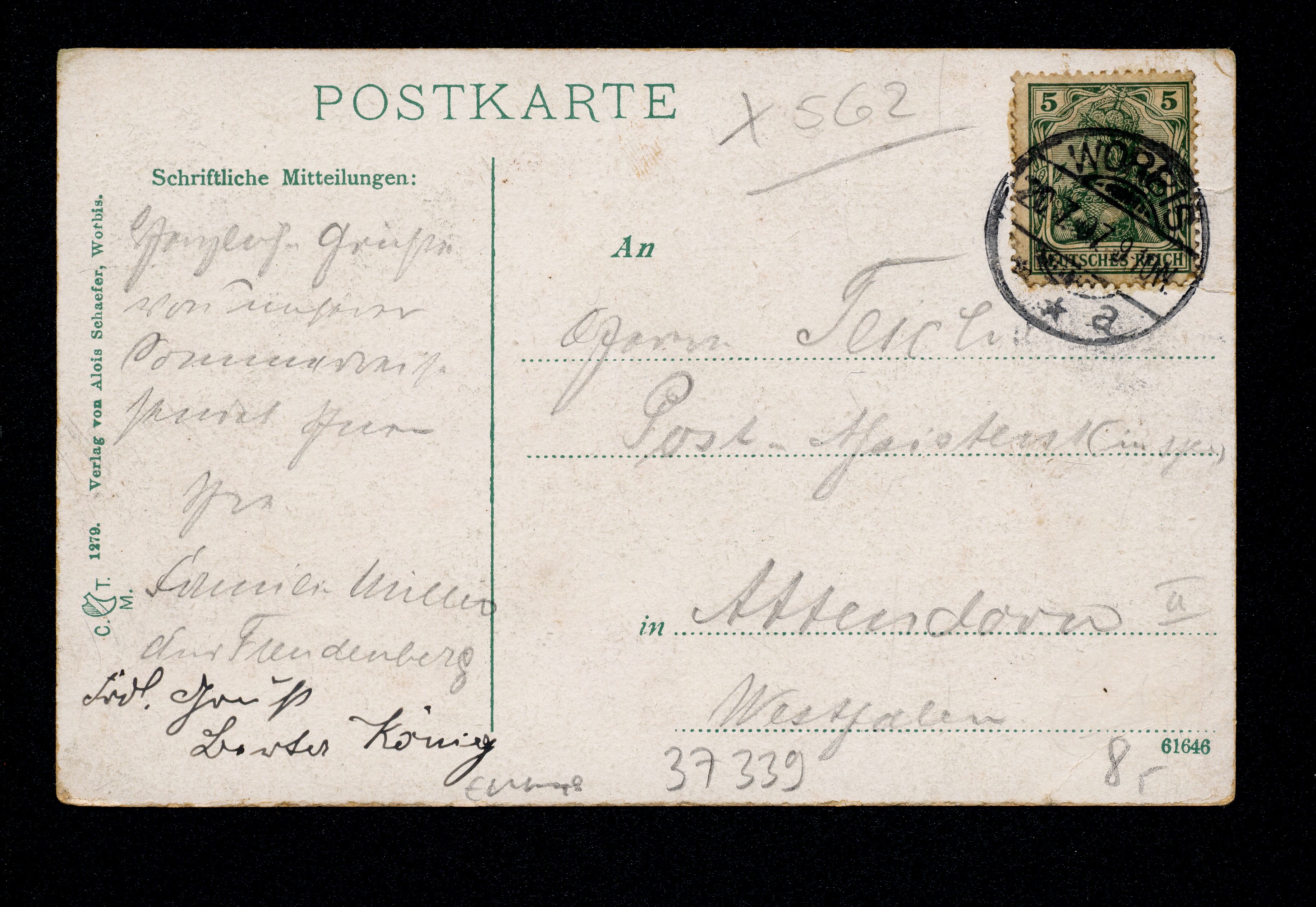 Ort Worbis Motive Panorama Format klein Jahr 1907 Verlag Aloys Schaefer, Worbis (Alois Schaefer) Bestell- oder Individualnummer 1279 61646 Versanddatum 20.07.1907